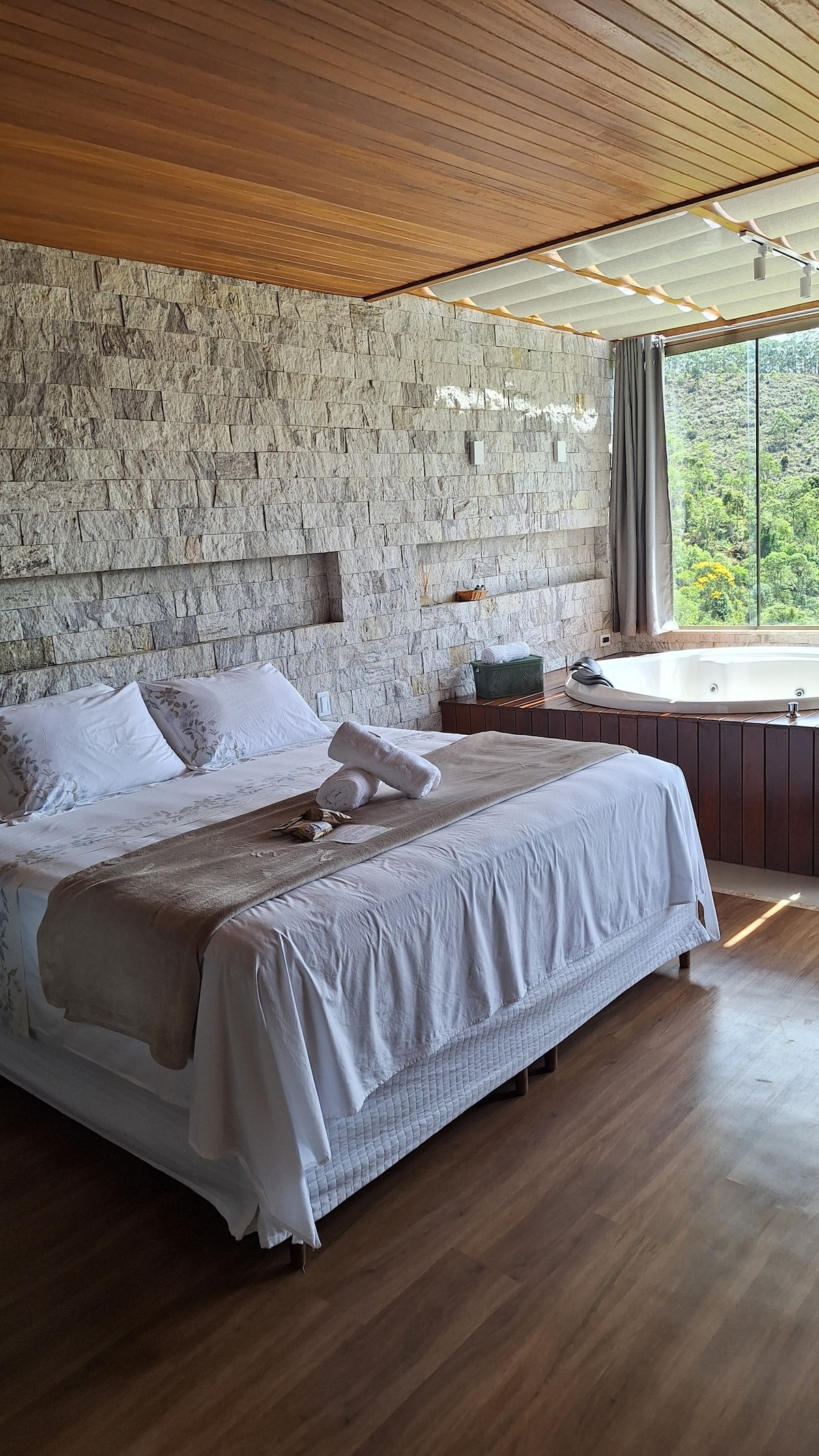 Retiro romántico en la montaña con jacuzzi privado climatizado y vistas al lago. Una invitación a reducir la velocidad, brindar en pareja y disfrutar del silencio de Pedra Azul. 📍A solo 10 minutos del centro de Pedra Azul y de la encantadora Rota do Lagarto, en un condominio cerrado y tranquilo. ✨ Ideal para parejas, con capacidad para un máximo de 4 adultos (posibilidad de un quinto huésped). ⭐ Somos Superanfitriones, con reseñas consistentes y atención en cada detalle de tu estancia.