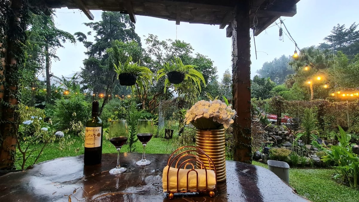 Descubre Ataco desde esta cabaña privada, perfecta para desconectar, disfrutar del clima fresco y despertar rodeado de naturaleza. Ubicada en plena Ruta de las Flores, ofrece una habitación con cama Queen, sofá cama, baño privado, zona de parrilla y kitchenette. Tendrás acceso a jardines amplios, senderos ligeros, hamacas, columpios naturales y vistas impresionantes. Una experiencia local auténtica con desayuno típico salvadoreño incluído, a solo 6 minutos en auto del centro de Ataco.