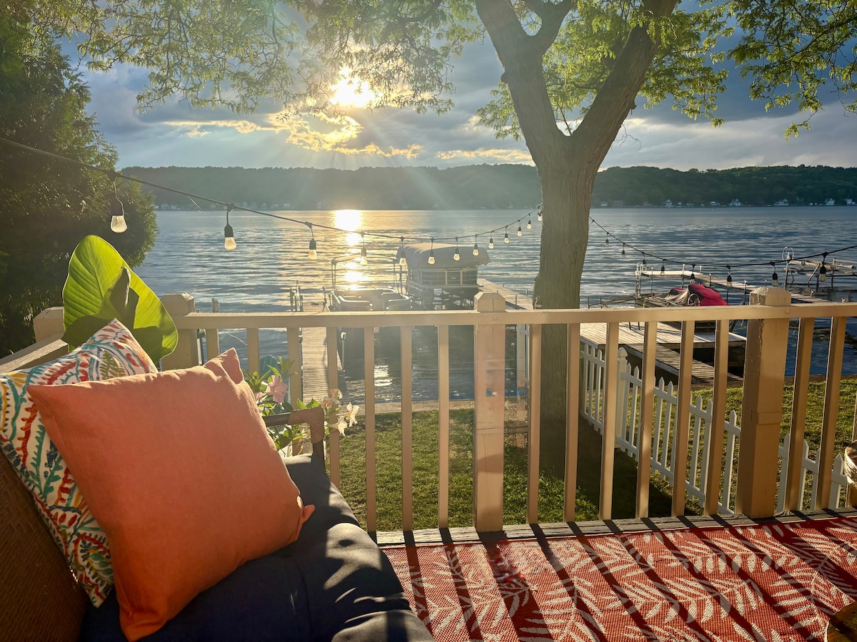 *Tarifas mensuales especiales fuera de temporada para enfermeras y profesionales médicos visitantes.* Ambiente remoto a minutos de la ciudad, esta propiedad que admite perros se encuentra directamente en más de 100 pies de frente al lago privado. Ubicada a 20 pasos sobre el agua, la FLX Guest House cuenta con vistas al sur y puestas de sol espectaculares durante todo el año. Ubicado en el corazón de los Finger Lakes, hay un sinfín de bodegas, cervecerías y opciones de aventura al aire libre durante toda la temporada cerca. Artículos para bebés disponibles bajo petición.