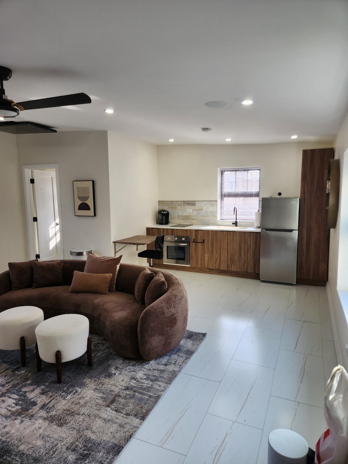 This unique place has a style all its own. Enjoy this beautiful, cozy guest studio with modern touches and well furnished living area, small kitchenette with mini fridge and microwave to reheat a quick bite before heading to the city, full bathroom with rainfall shower and handheld sprayer to help you relax after a long day. Flat screen TV with Xfinity streaming device so you can connect your accounts and enjoy your favorite shows and movies for a quiet stay in.