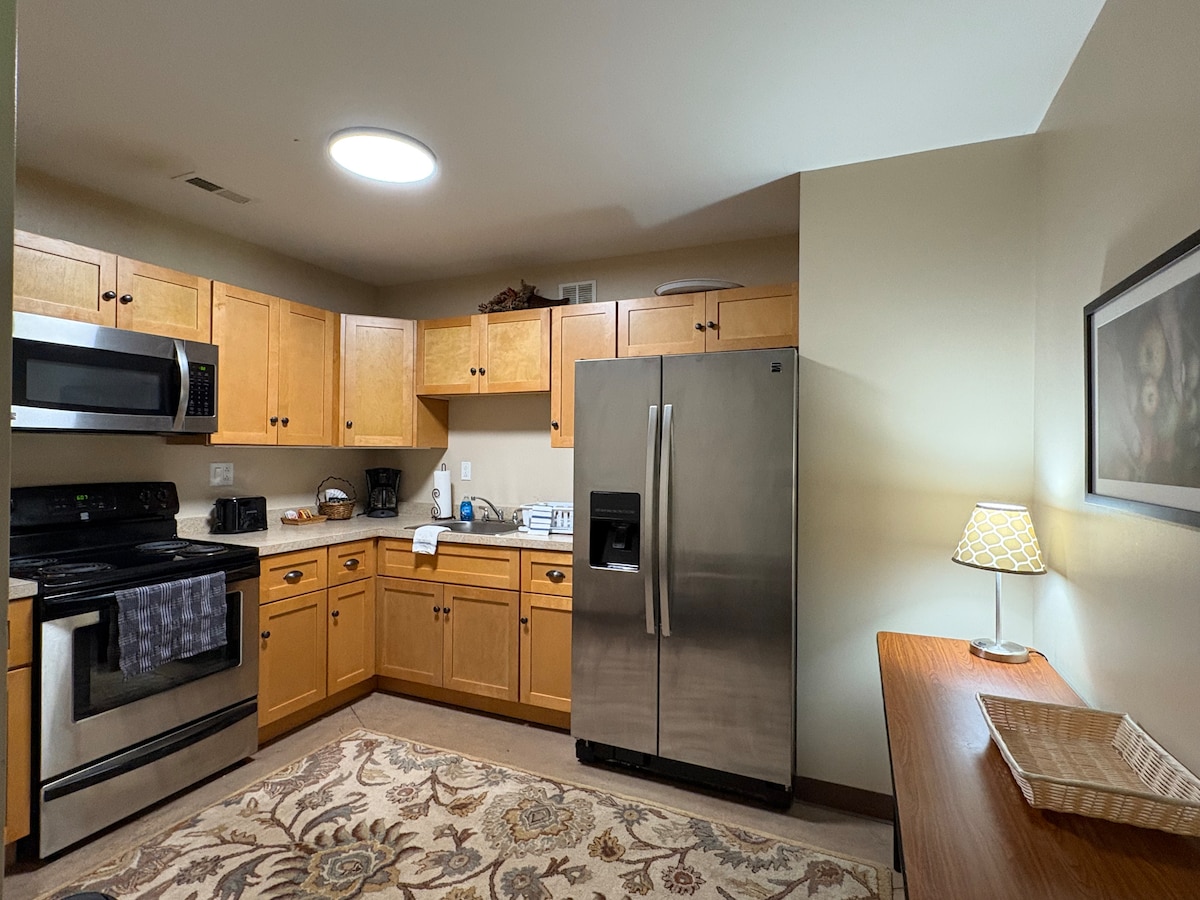 The Porch at Fairystone is your home away from home. This 1 bedroom 1 bathroom vacation home boasts a large open concept with the living area, kitchen and dining area all in one large room. Through a beautiful barn door you’ll find your bedroom and in-unit laundry closet with washer and dryer. Enjoy a beautiful outdoor dining space with chairs for 3 and a grill to cook your favorite meals. Just minutes away from Fairystone State Park, Goose Point, and Philpott Marina, Dam and Lake.