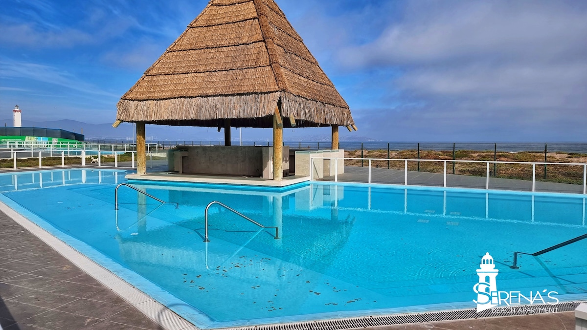 Lujoso dpto., decorado en base a materiales nobles, creando un espacio exclusivo para la relajación y el descanso. Vista al mar y laguna, cerca del faro y avenida del mar, cuenta con piscinas y laguna para practicar deportes acuáticos. Dormitorio en suite, cocina equipada, TV/streaming, Wifi, Terraza-comedor y estacionamiento. El resort ofrece ademas cancha de tenis, voleibol playa y zonas de calistenia. Se incluye juego de toallas, sabanas y artículos de aseo personal. Ofrecemos Welcome kit.