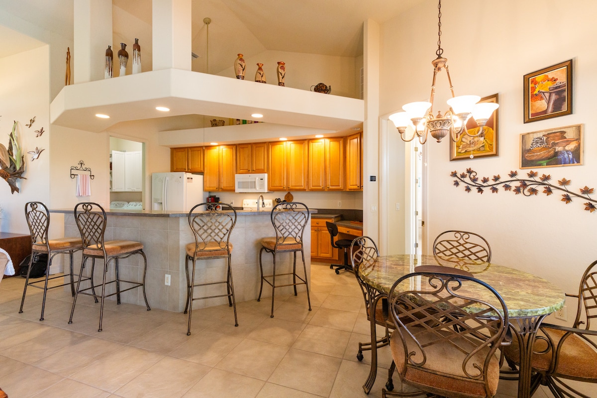 Estancia relajada y cómoda para familias y grupos Trae a toda la familia, o a dos familias, a un espacioso alojamiento en Cape Coral diseñado para estadías sencillas y cómodas. Con techos altos, un diseño abierto y varias zonas de reunión, hay mucho espacio para relajarse y socializar. Disfruta de un jacuzzi privado, dos camas tamaño king y un barrio tranquilo a pocos minutos de restaurantes, tiendas y atracciones locales. Ideal para familias, amantes de la nieve y grupos de hasta 8 personas que busquen un alojamiento limpio y bien cuidado, con un anfitrión atento.