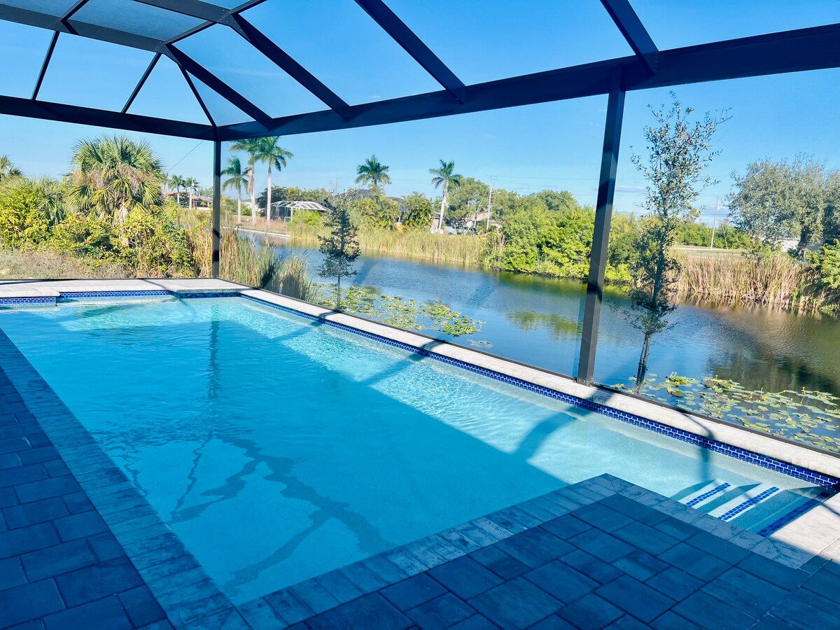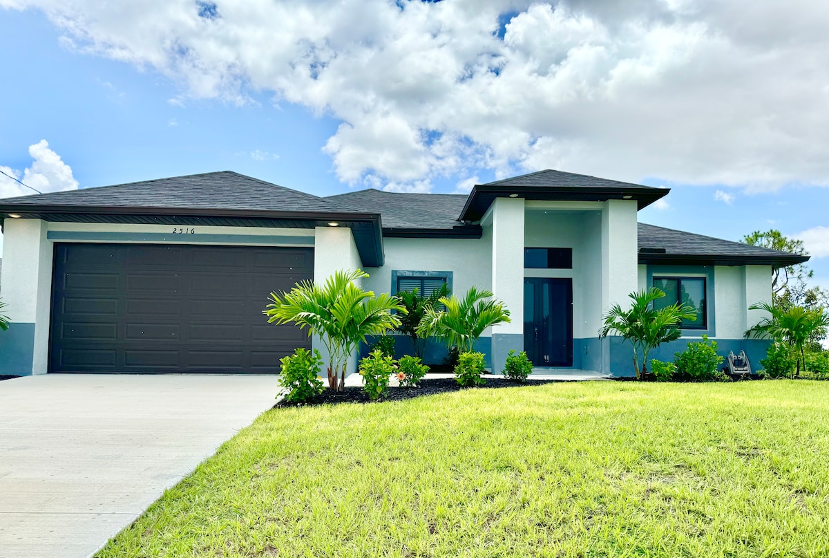 We want to Be you Host in Cape Coral! Let us show you why you should book with us: - Top Location: - 2 Min to Sun Splash Family Water Park - 20 minutos to Fort Myers Beach - 20 minutos to Sanibel Beach - New Hot Tub - 5 Smart TVs - Fast WIFI - Terrace with Gazebo - Fully equipped kitchen - Dedicated work space - Free Onsite parking - BBQ - Outside dining - Washer & Dryer - Playground - Games Room - Mini Golf - Beach towels - Residential Neighborhood - 24/7 Available Hosts