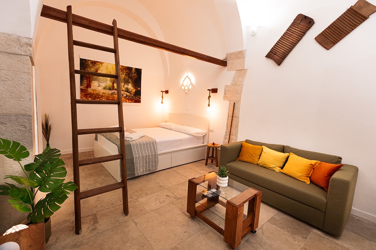 Construido entre los años 1300 y 1400, un loft de piedra con vistas al mar Adriático. Este edificio se utilizó por primera vez una casa de cañones y a lo largo de los años siguientes sirvió como almacén, una fosa de carbón y un taller de un renombrado pintor local. Hoy nuestra familia se compromete a revivir este edificio y su historia, proporcionando a los huéspedes una estancia única y cómoda en el corazón de Apulia.