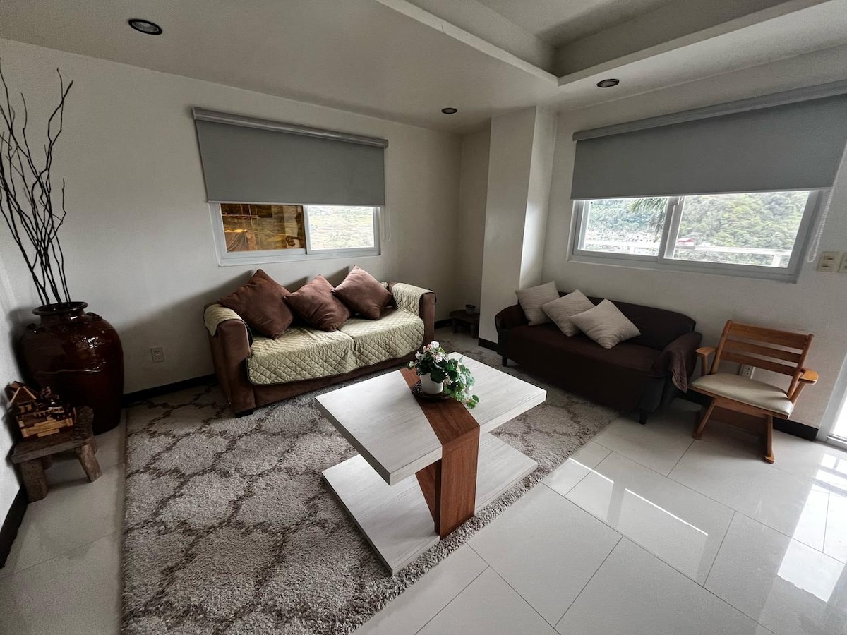 Antes de reservar, POR FAVOR, LEE nuestros detalles. 😊 Por qué deberías reservar ahora. 👉 Ideal para familias 2 dormitorios👉 acogedores y modernos con sala de estar convertible. 👉 1 baño completo. Wifi 👉 de alta velocidad. 👉 Dos televisores 4K: 50 pulgadas (sala de estar) y 43 pulgadas (dormitorio) con NETFLIX y Disney+. Cocina 👉 completa 👉 Balcón con IMPRESIONANTES VISTAS A LA CIUDAD Y A LA MONTAÑA. 👉 Cerca del centro de la ciudad. A 👉 2-3 minutos de John Hay y Victory Liner Bus. ¡Casa de huéspedes👉 impecablemente limpia! 👉 APARCAMIENTO PARA 1 COCHE/FURGONETA SOLAMENTE Nota: Estrictamente máximo de 6-8 personas.