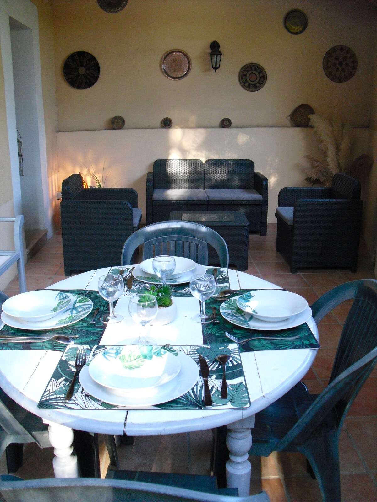 🔆 Casa de artista en un entorno verde 🔆 🌳Gran villa rodeada de un jardín arbolado y cerrado en las afueras del pueblo, a pocos kilómetros de Béziers, con una hermosa vista del campo y los viñedos de Languedoc. 👨‍🎨Los propietarios han trabajado en el mundo artístico, cada pieza está decorada con cuidado, con carteles de teatro y obras de arte. 🪆Perfecto para una familia de cinco o seis personas (+ un bebé).