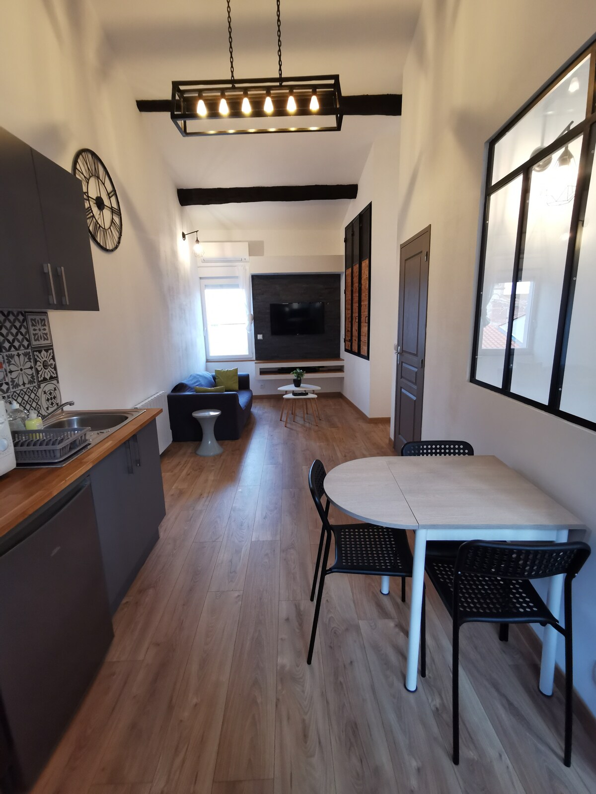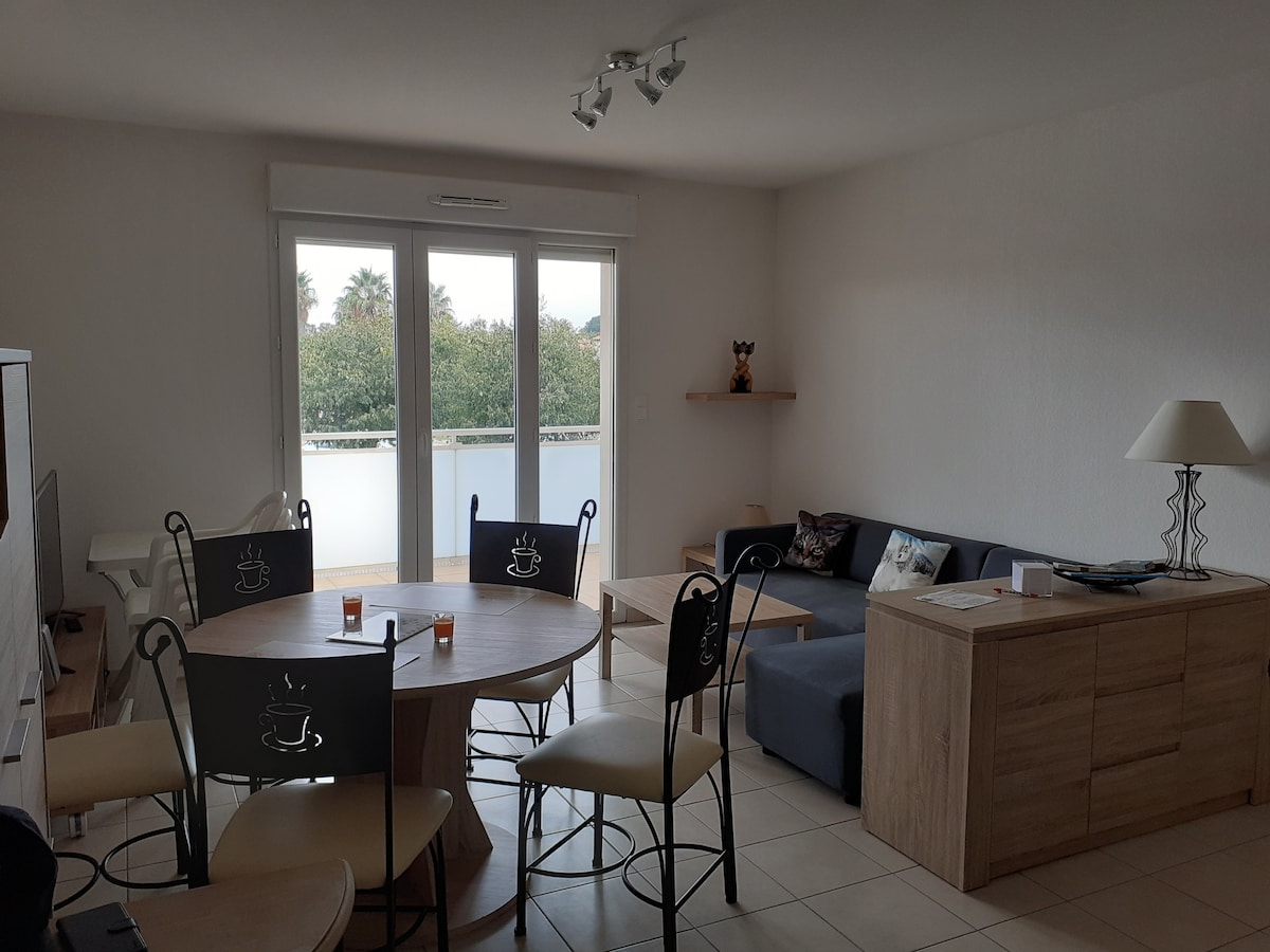 Esta tranquila y elegante T2 de 42 m2 te da la bienvenida en un ambiente vintage de los años 50. Situado a tiro de piedra del centro de la ciudad, cerca de tiendas y a pocos minutos de las playas, ofrece un entorno ideal para relajarse. Disfrutarán: - su dormitorio soleado y su cómoda cama "tamaño queen", - su cálida sala de estar con sofá cama, - su soleado jardín privado y su barbacoa. Perfecto para disfrutar del clima mediterráneo. Disfruta, Fabien