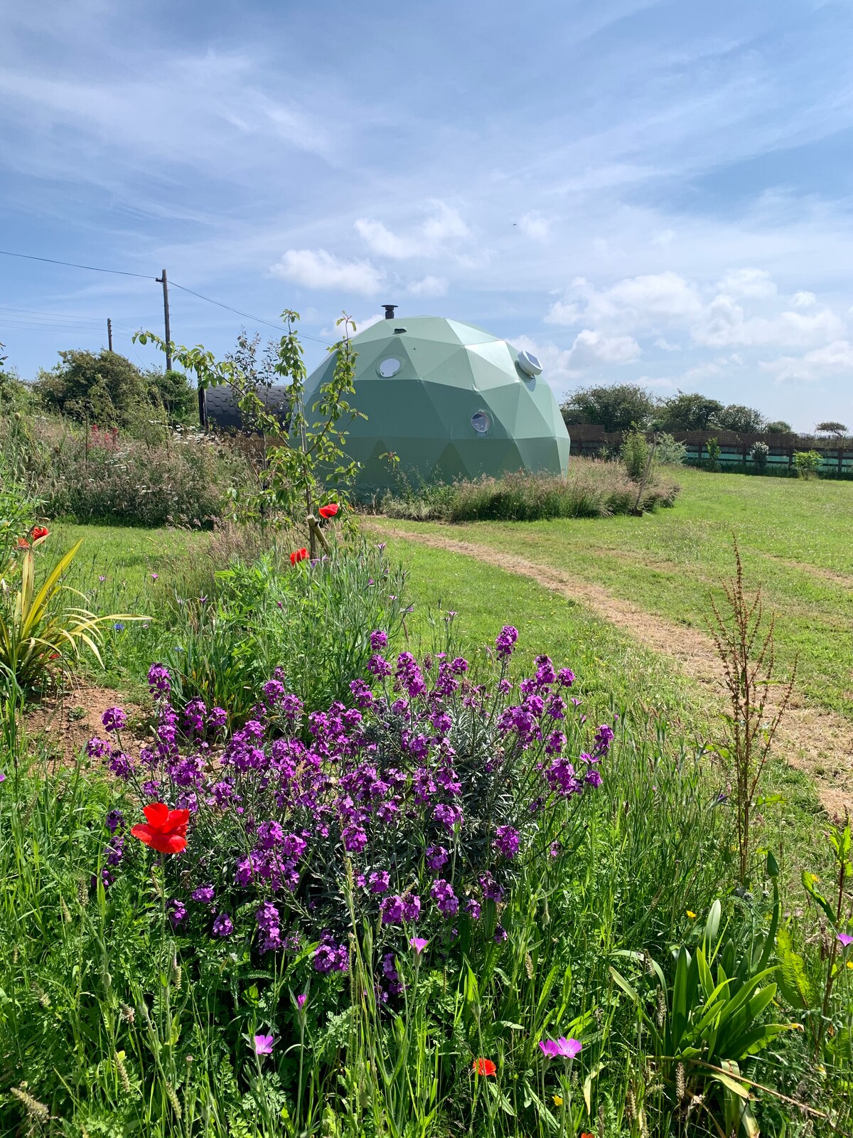 Vida al aire libre pero con el lujo de un hotel. Nuestra tienda de campaña con cúpula geodésica de 6 m está totalmente aislada, con una estufa de leña para esas noches más frías. Cama tamaño king con sábanas de lino con opción de añadir dos camas individuales apilables. Terraza exterior y cápsula privada con baño, con cocina totalmente equipada y baño. Una de las dos tiendas de cúpula en una zona separada en nuestro campo. Ubicación semirural, a 5 minutos a pie del pueblo y sus servicios y a 5 minutos en coche de la hermosa playa de la costa norte de Porthtowan.