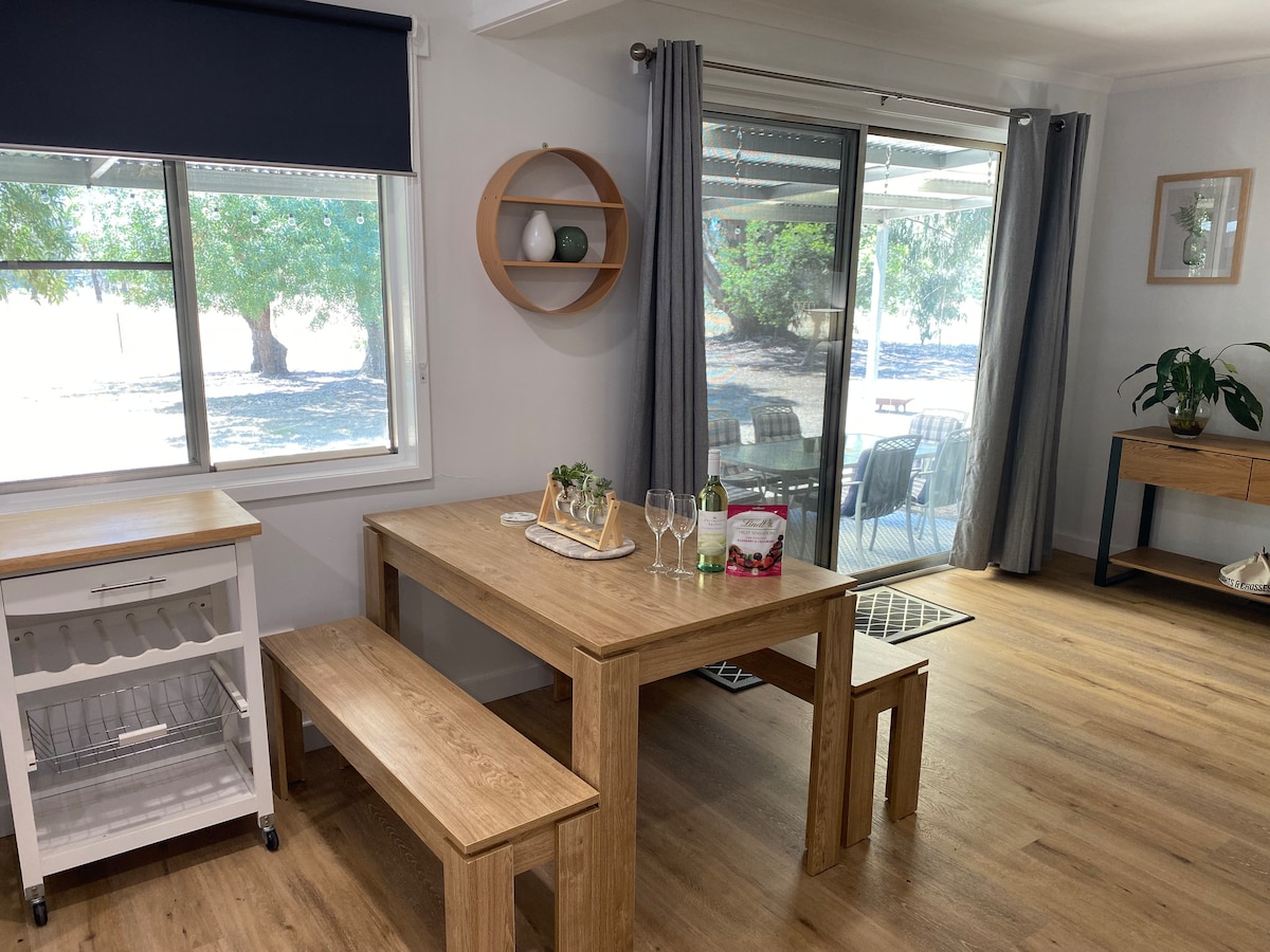 Delightful old miner's house renovated and furnished in a modern/country style with fresh and colourful decor. Three double bedrooms with ceiling fans. Located in the small town of Wahgunyah in close proximity to the Murray River (two blocks) and wonderful walking/riding trails. Also near iconic wineries Cofields, All Saints, Pfeiffers and more. Short stroll over Old Bridge to Corowa. Light breakfast requirements supplied. Pets are welcome.