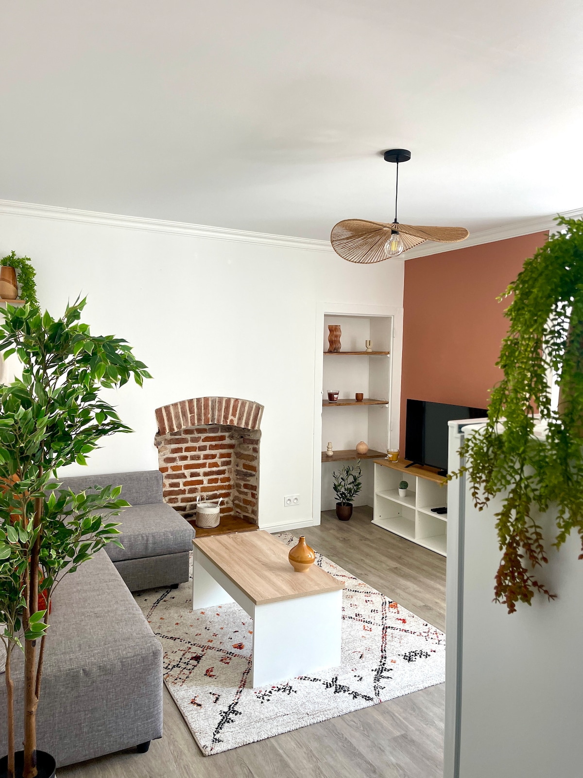 El apartamento está en el primer piso de una casa de pueblo, es un dúplex reformado. Se encuentra en la plaza del mercado con todos los servicios a pie (panadería, restaurantes, farmacia...) La entrada principal de la casa es común con una oficina (profesional de la salud). El primer nivel del apartamento está equipado con una sala de estar, una cocina abierta equipada, un baño con ducha y WC y una zona de entrada. La habitación está en el segundo nivel. El apartamento es muy tranquilo, muy luminoso.