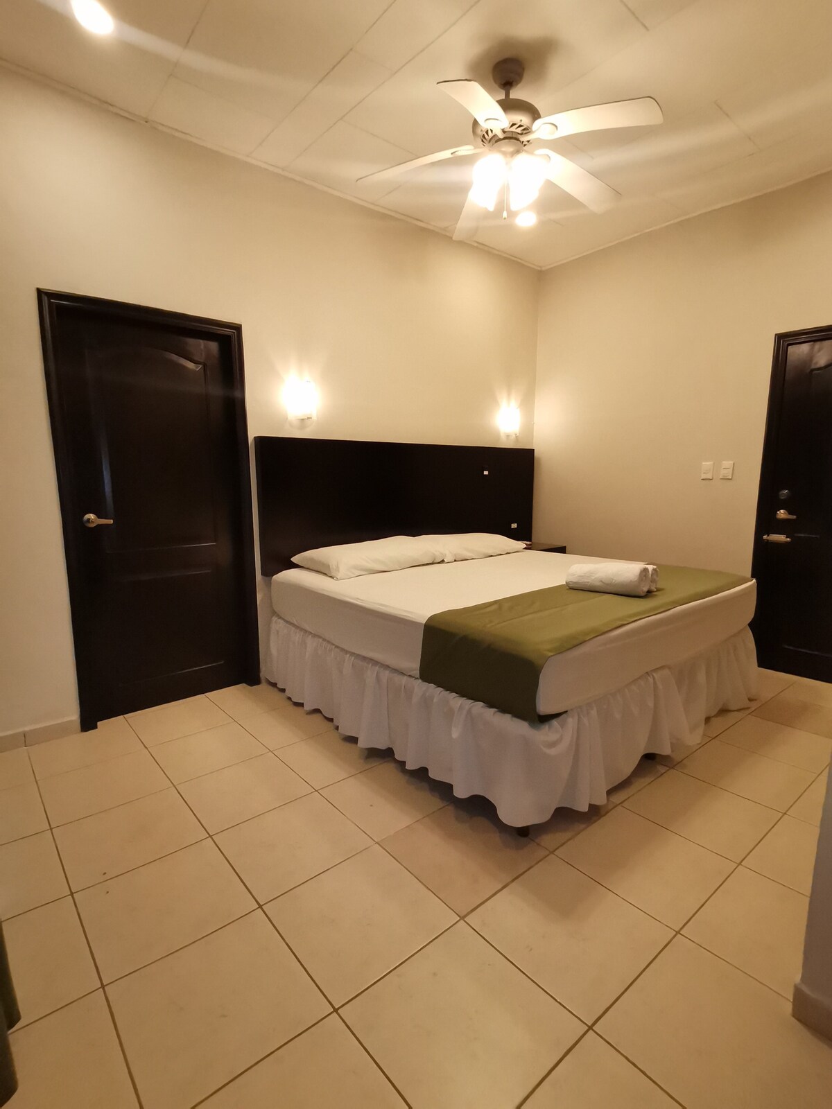 Nuestra Suite Junior es privada y cuenta con una cama Queen y una cama individual, baño amplio privado con agua caliente, TV LED de 32" c/ cable, una mesa de noche, unos percheros, un gabetero, una base de madera en donde puede trabajar, plancha y planchador, Wi-Fi y aire acondicionado. Estamos ubicados cerca del City Mall, la Zona Viva, la Central de Autobuses, Copantl Hotel & Convention Center, hospitales, bancos, el centro de la ciudad, entre otros. También contamos con planta de energía.