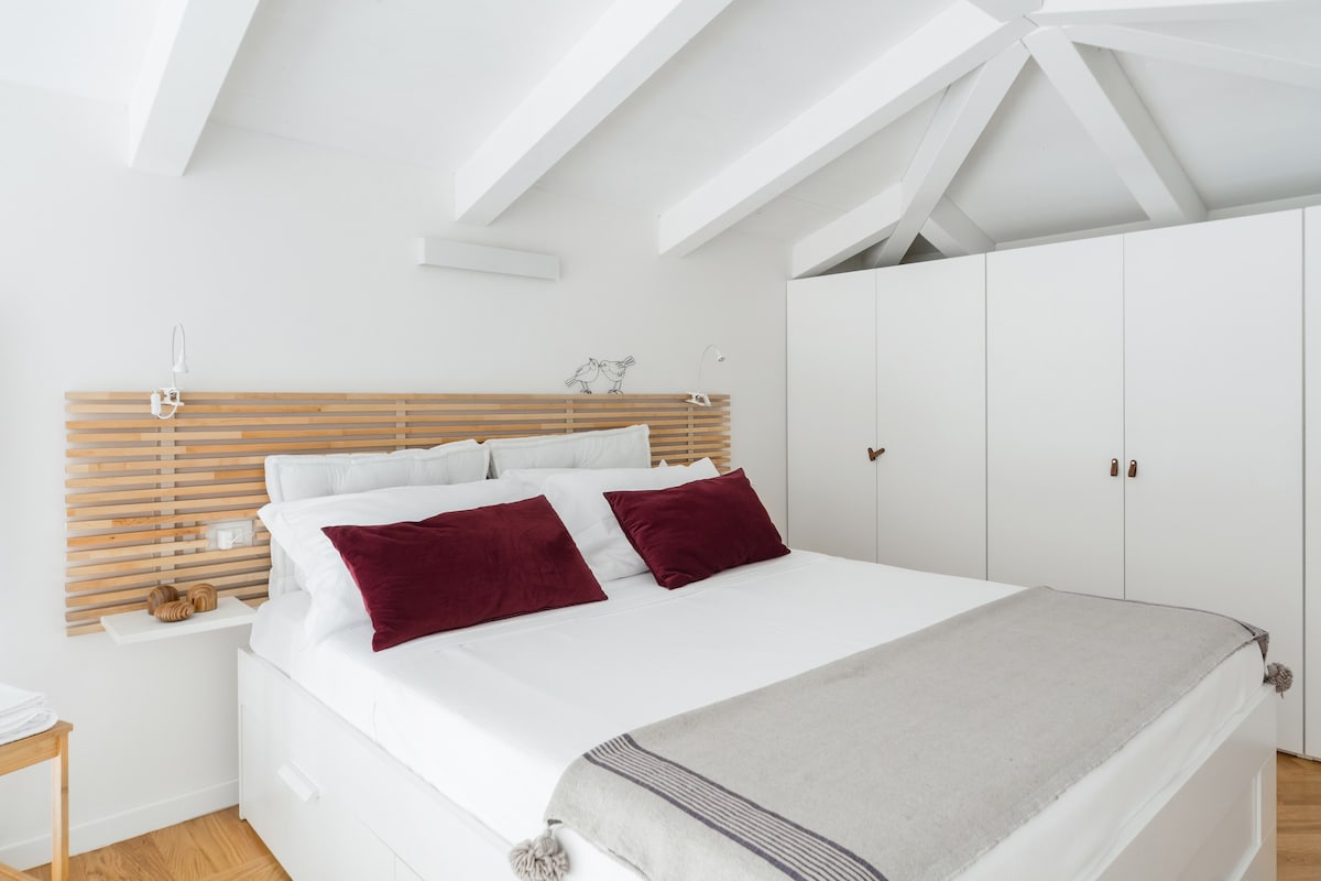 Ático ◦ encantador, luminoso y super tranquilo con una vista preciosa de la ciudad. ◦ Limpio y cómodo, ideal para una estancia encantadora en Bolonia. Ubicación ◦ muy céntrica. El lugar perfecto para explorar el centro de la ciudad a pie. Equipado con todas las comodidades necesarias para una estancia agradable: 1 cama doble Patio donde se puede desayunar y comer. Wifi potente. Aire acondicionado Mesa espaciosa donde puedes trabajar/estudiar. Baño con ducha. Cálido parqué de madera dura. Ventanas que dan a un tranquilo patio interior.