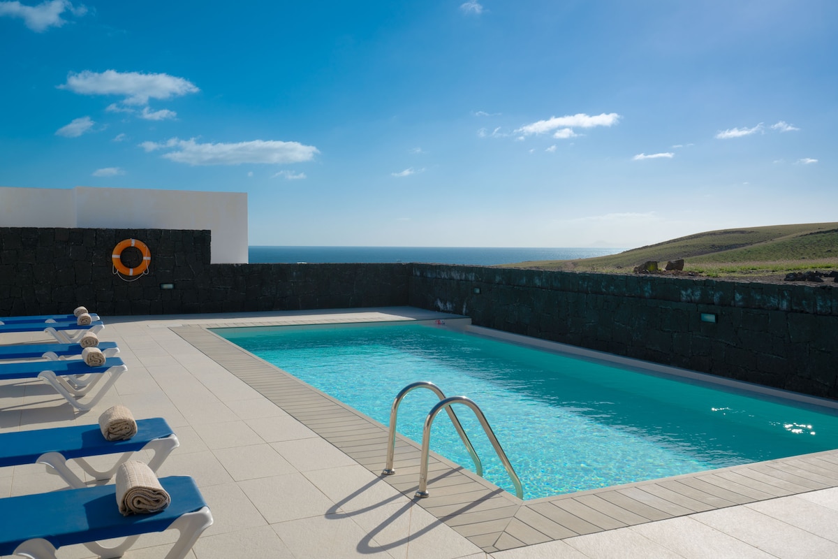 Esta fantástica villa construida en 2023 se encuentra al sur de la isla de Lanzarote, en la privilegiada zona de Puerto Calero. Cuenta con 3 dormitorios, 2 baños y wifi gratis. Posee dos magníficas terrazas con vistas al mar, así como piscina y barbacoa propia, ideal para parejas y familias que busquen tranquilidad y comodidad.