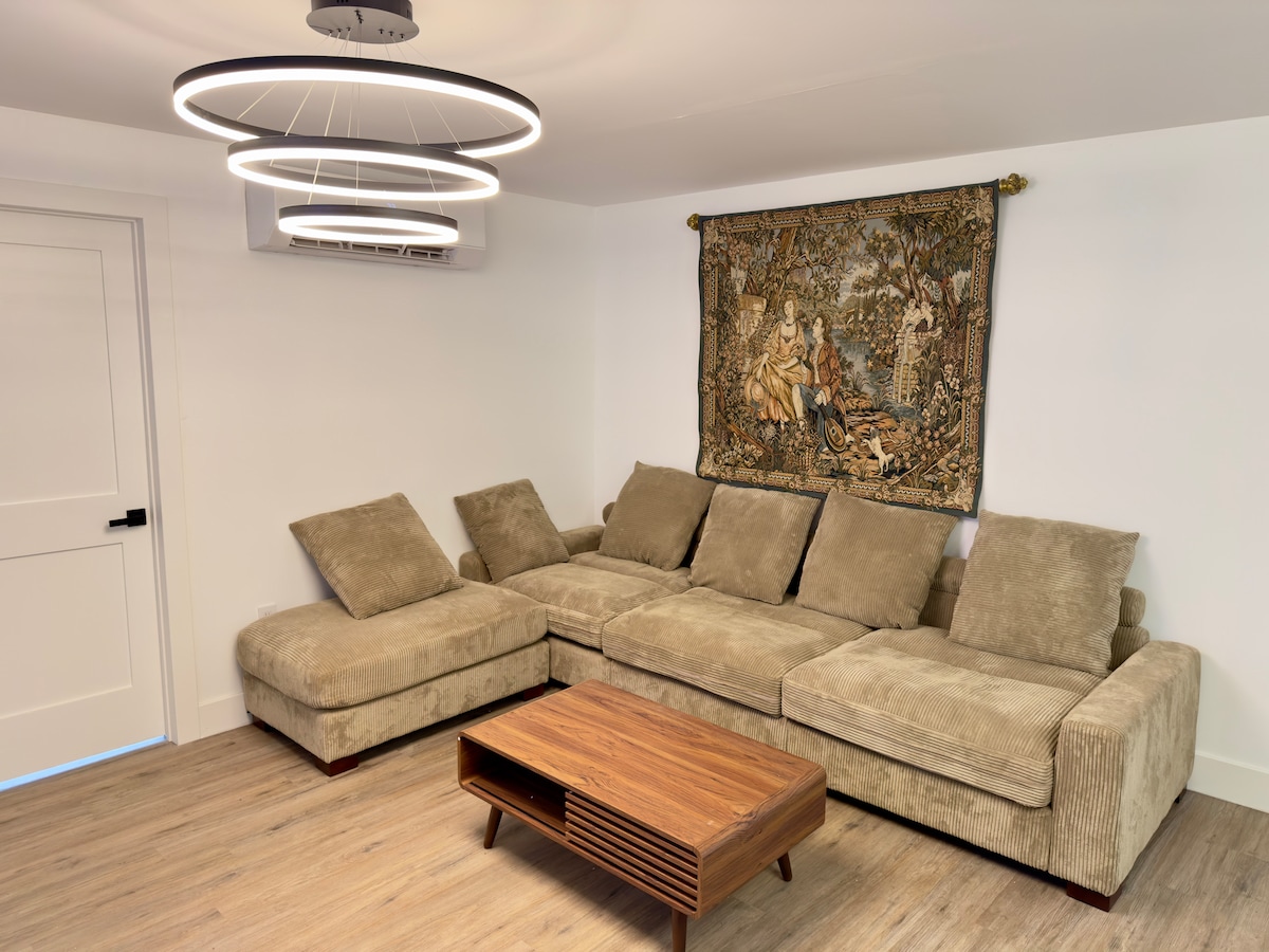 Todo lo que necesitas en un solo lugar. Azulejos limpios y paredes de madera de pared a pared. Techos de 10" con iluminación LED. El aire acondicionado central te mantiene a la temperatura perfecta. Tu propia lavadora y secadora. Seguro y protegido con entradas exteriores cerradas con un sistema de alarma contra incendios y un sistema de rociadores. Tu propio garaje privado. Gran patio trasero con fogata.