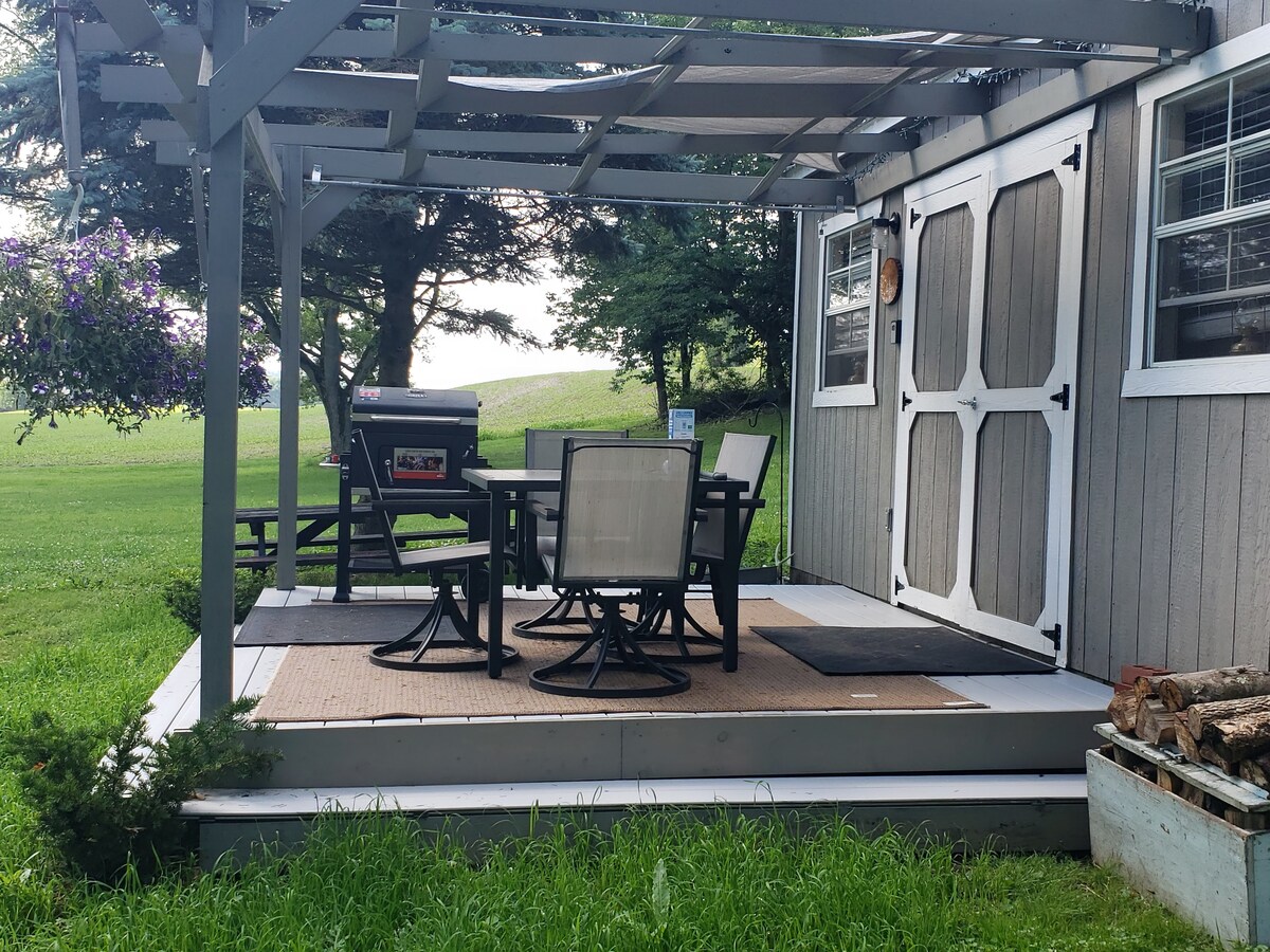 Ubicado en el bosque en la parte superior de un carril de una milla de largo, este pequeño oasis es el lugar ideal para que los cazadores se relajen y disfruten del entorno rural. Esta cabaña rústica de 1 habitación está cerca de la casa principal. Estamos cerca y disponibles. Incluye su propio pozo de fuego, parrilla de gas, iluminación exterior festiva, una cocina totalmente equipada y baño completo y espacio más que suficiente para detener y estacionar su remolque y vehículo todoterreno. Se encuentra a una milla del área de vida silvestre de Woodbury, una de las áreas de caza estatales más grandes de Ohio.