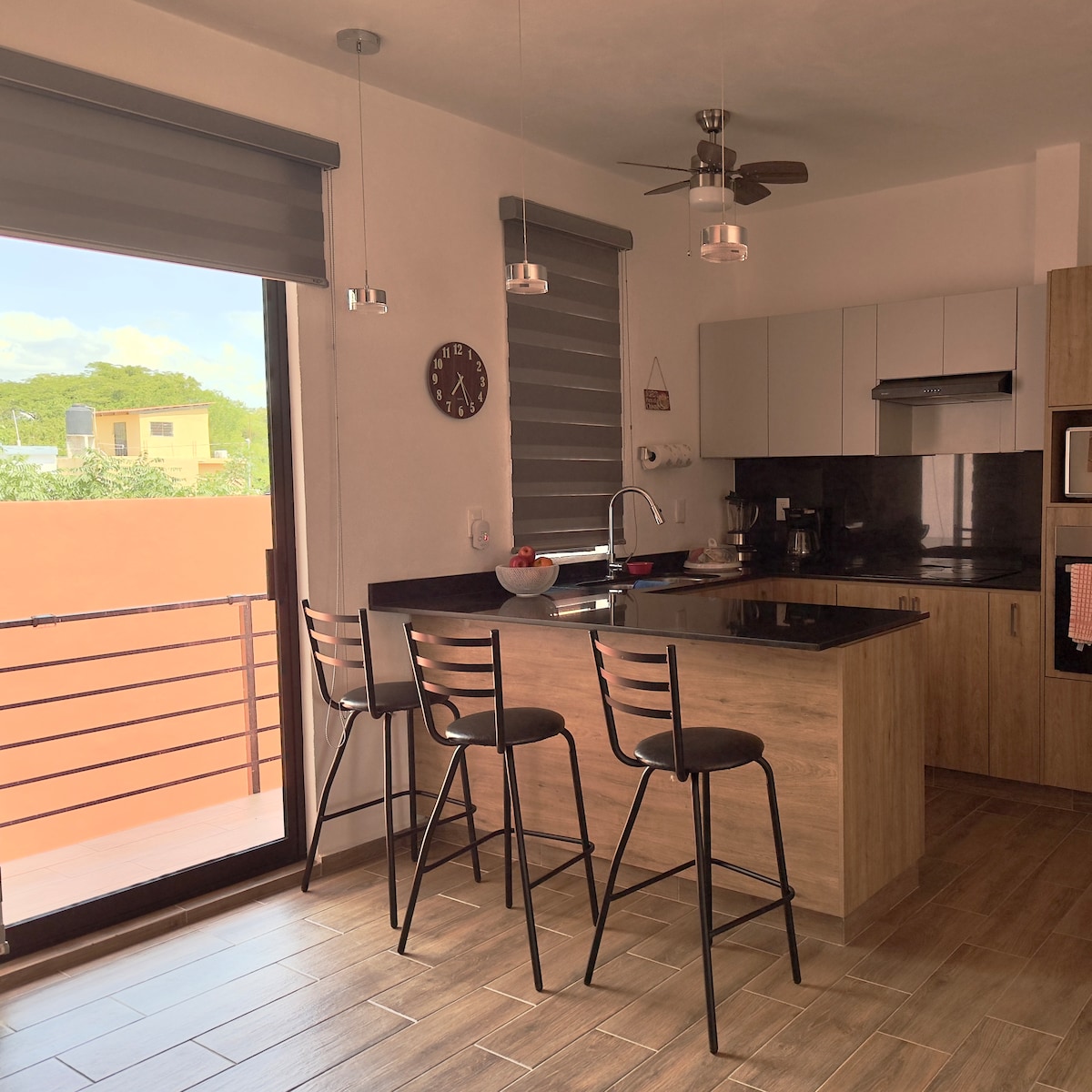 Forget your worries in this spacious and serene space at Los Amores Apartments. A very spacious apartment with 3 bedrooms and 2 bathrooms. Also a very comfortable living room, a big dining area and a beautiful kitchen with all that you need to cook. Plus, a beautiful view from the outside patio. The entire apartment has A/C! Only 3 1/2 blocks away from the beach and 2 blocks away from el centro (the main plaza).