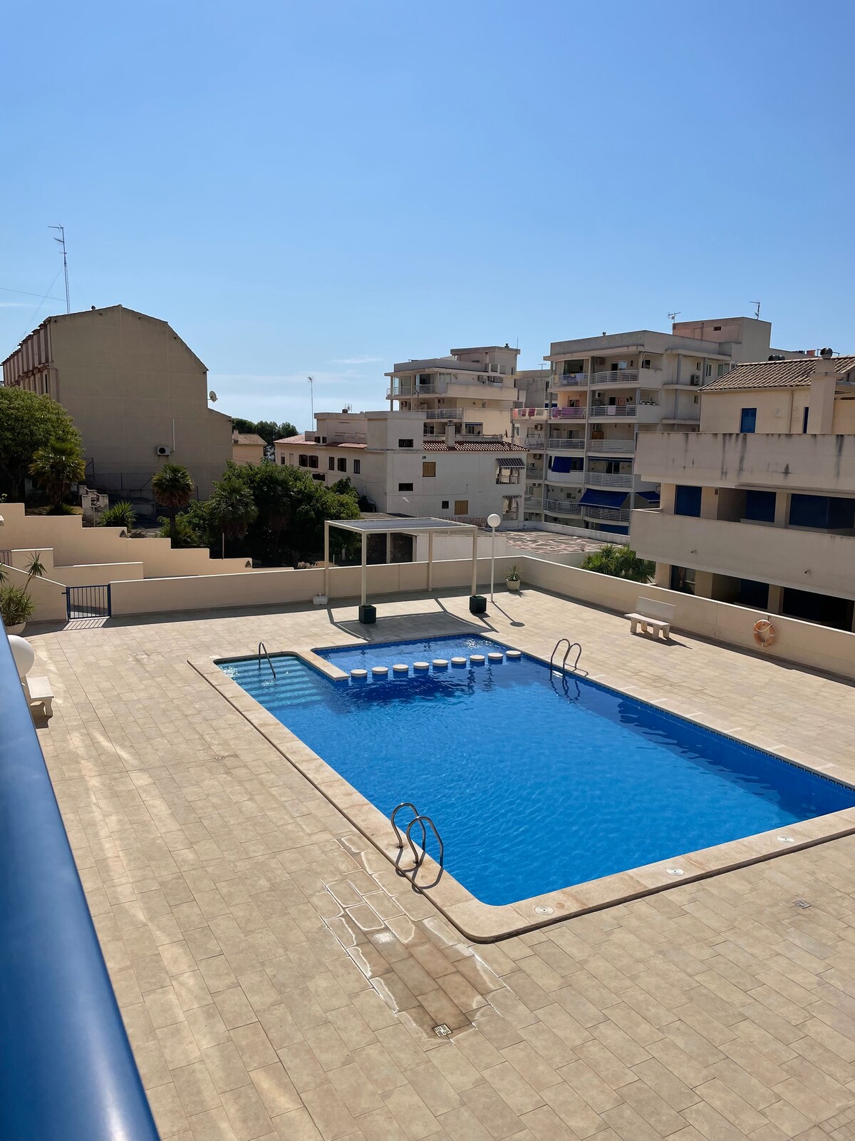 Relájate en este apartamento frente a la playa de hermoso diseño con impresionantes vistas al mar, ideal para familias. Situado en una comunidad tranquila y acogedora, cuenta con una decoración mediterránea minimalista, iluminación indirecta con reguladores y todos los elementos básicos para niños. Tiene dos dormitorios dobles, una habitación auxiliar con lugar de trabajo, un baño completo, una sala de estar luminosa con acceso a una amplia terraza y una cocina totalmente equipada. Estacionamiento y piscina incluidos. Aire acondicionado y calefacción. Sin ascensor.