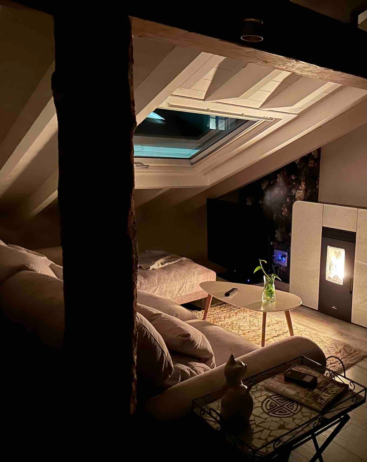 Diáfano, con personalidad, elegante. Este estudio es el escenario perfecto para unos días de relax con todo lo que necesitas: jacuzzi, chimenea y buena compañía. Además, dispone de cocina para platos de elaboración sencilla y ducha Vichy. TV 50” y Chromecast Se facilitará la posibilidad de compra de paquetes de leña en el apartamento UTILIZACION DE MAQUINA DE OZONO Este Estudio es muy luminoso y acogedor ... dispone de todo lo necesario para disfrutar de la estancia ,está ubicado en una zona residencial a 10 minutos en coche del centro de la ciudad con parada de autobús de línea (N3) Y con un centro comercial a 800 metros IMPRESCINDIBLE FACILITAR LOS DATOS DE UNA TARJETA DE CRÉDITO ACTIVA Es un espacio Único !! A parte de realizarles personalmente la recepción .. les facilitaremos una guía personal de lugares interesantes que ver y sitios recomendados para conocer nuestra gastronomía , con diferentes rutas muy interesantes La paz de la zona residencial donde se ubica marca, sin duda, la diferencia. Pero si quieres combinar el bullicio con la calma, está a tan solo 6 km del centro de Santander y muy cerca de las playas, con carreteras alrededor bien conectadas. Dispone de aparcamiento privado al aire libre enfrente de el estudio Moverse en coche y hay autobús de línea (3) muy cercano Disponen de una chimenea que les acompañará mientras están en el jacuzzi dándose un baño burbujeante o relajante .... si están leyendo .. o conectados a internet .... la cocina de servicio les proporcionará un rico desayuno o una saludable cena ligera ..y podrán disfrutar de una cama amplia y confortable en un entorno Acogedor con la sensación de estar en casa ..