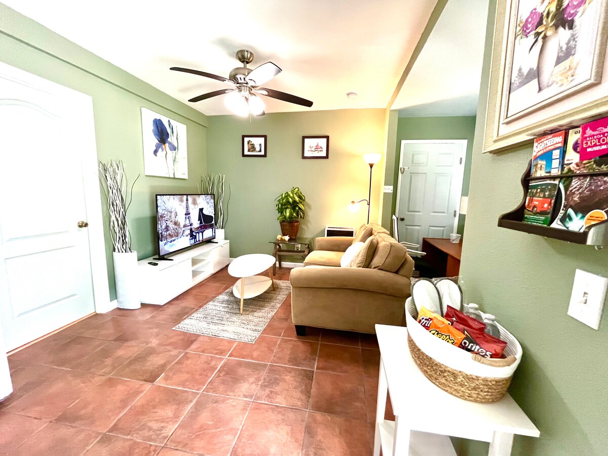 Tómate un descanso y relájate en nuestro oasis de inspiración costera. Disfruta de un ambiente de cabaña relajado con mucha luz natural en un barrio tranquilo. Esta suite privada de nueva construcción cuenta con electrodomésticos, muebles y accesorios nuevos. Tendrás todo lo necesario para sentirte como en casa con una cocina totalmente funcional, baño privado y lavadora/secadora apiladas. Incluye un cómodo espacio de trabajo con puertos de carga y un sofá biplaza reclinable junto con una nueva cama tamaño queen de espuma viscoelástica de gel.