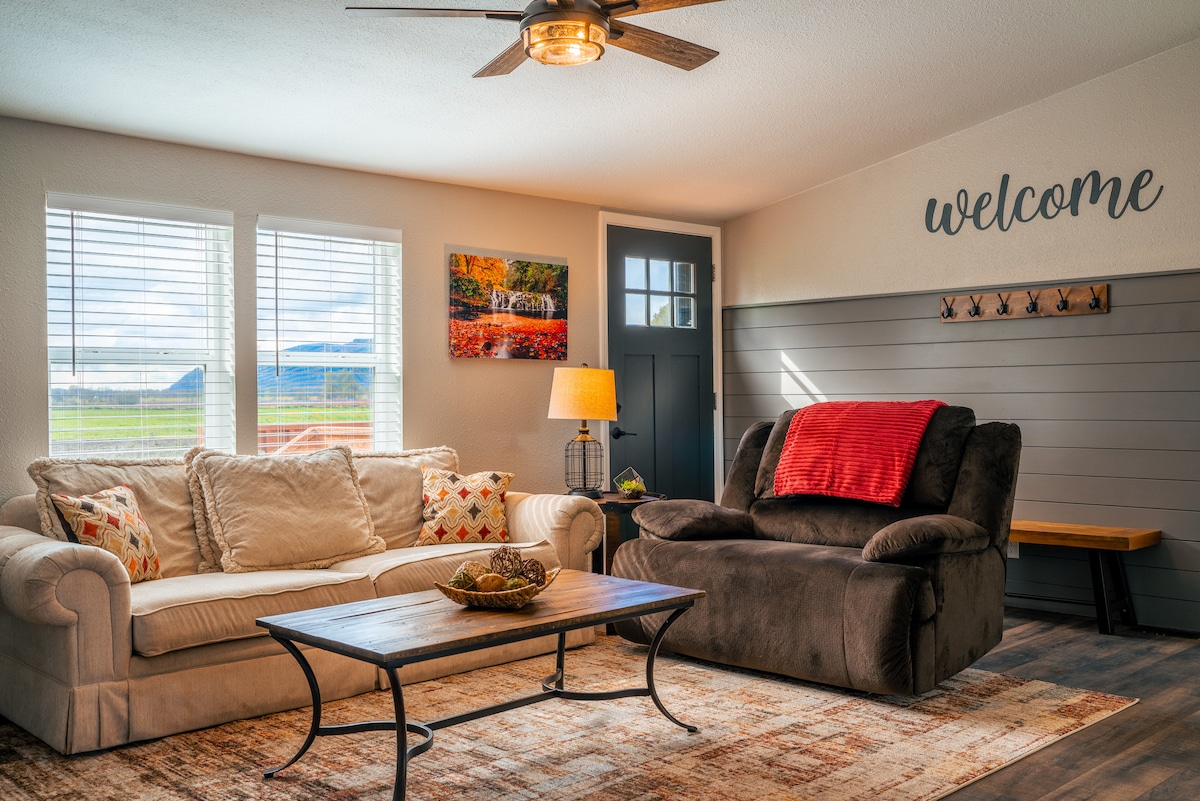 Disfruta de una estancia única mientras escapas de la ciudad y te refugias en la naturaleza en nuestra casa contenedor de transporte construida a medida, ubicada en medio de una granja sostenible de 10 acres que alberga a nuestras vacas de las Tierras Altas de Escocia. ¡A solo minutos de la I5, esta propiedad lleva la vida más pequeña a un nivel completamente nuevo! Disfruta de todas las comodidades mientras te hospedas en medio de una granja en funcionamiento. Acurrúcate un rato y vete renovado, o usa nuestra casa como una ubicación céntrica para las montañas, el océano y la garganta.