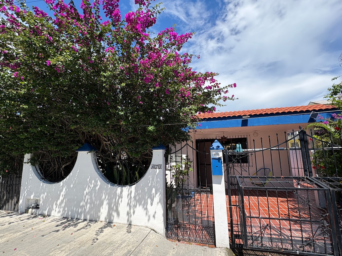 Acogedora casa ubicada a pocos minutos del Ferry de pasajeros cuenta con 2 recamaras con AC, 1 cama king Size, 2 matrimoniales y un sofá cama, cocina sala y comedor amplios , servicio de WiFi y netflix incluido. Cochera para un auto compacto y una linda área para relajarte al aire libre. Cámara exterior de seguridad las 24hrs. Casa completamente equipada para que puedas disfrutar de una estancia placentera. Tiendas de Autoservicio, lavandería, hospital, unidad deportiva en la zona.
