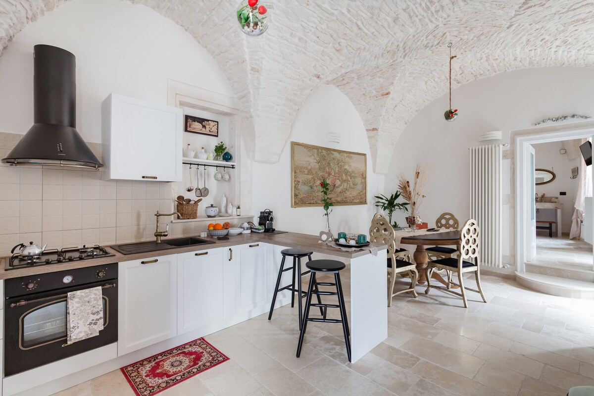 Esta villa y trullo de 1780, llamado trullo Fedele Bonotto, han sido completamente restaurados, pero aún se encuentran entre los olivos centenarios de la zona. Admira las históricas paredes de piedra, relájate en la piscina privada y el solárium, y disfruta de la hermosa zona del jardín, todo exclusivo para los huéspedes y su privacidad. El personal que se encarga de la limpieza de los espacios externos e internos de la propiedad sigue estrictamente las normas sanitarias previstas para la COVID-19. Antes de la llegada de cada huésped, se lleva a cabo un saneamiento completo. El tamaño de la casa y el gran jardín garantizan absolutamente las distancias de seguridad social y sin contacto. La villa, con olivos centenarios, tiene un comedor y una cocina totalmente equipada con utensilios y vajilla, lavavajillas, nevera y horno. Gracias a un pasillo se llega a los dos dormitorios dobles, cada uno con su propio baño. Separado de la villa, con entrada independiente, se accede al trullo, de unos 50 m2 de superficie, donde hay una cama doble, un sofá cama doble y un baño privado. En la zona exterior hay una gran mesa con 10 sillas, varios asientos, una barbacoa y la piscina para uso exclusivo de los huéspedes. También está unido a la villa el cuarto de la caldera con lavandería, completo con lavadora. ¡Toda la estructura es para uso exclusivo de los huéspedes que pueden vivir en estos momentos inolvidables de descanso y tranquilidad! Los huéspedes tienen el uso exclusivo de toda la villa y del trullo adjunto, y de toda la zona al aire libre, que incluye la sala de estar, la piscina y la lavandería. Inmersa en la impresionante campiña, la casa está situada cerca del centro de Ceglie Messapica. Cena en excepcionales restaurantes de propiedad familiar, navega por los mercados locales y da un paseo a pie o en bicicleta por los valles. Tienes un aparcamiento para tu coche, en 20 minutos llegas a las playas del mar Adriático, en 30 minutos puedes llegar a las playas del mar Jónico.
