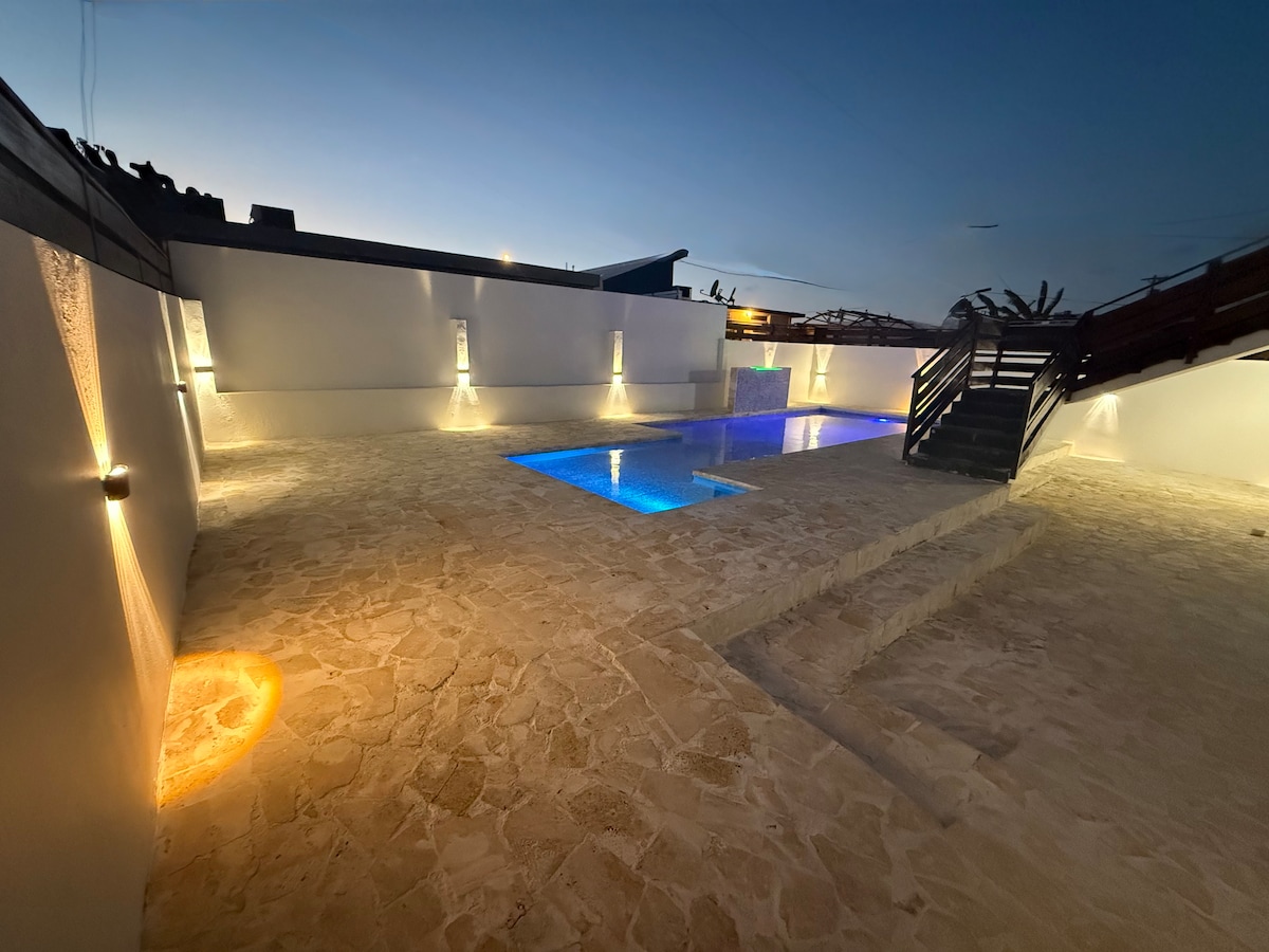 Justo en la playa con una terraza de 30'x12' para relajarte y tomar el sol, ¡y experimentar las increíbles puestas de sol de Rincón! El bistró a unas puertas de distancia está bajo nueva administración y abierto para pasar un buen rato, ¿entonces? camina 50 yardas de regreso a tu escondite frente al mar. ADEMÁS, una piscina redonda cristalina para disfrutar (¿especialmente de noche? con la luna y las estrellas y las olas y, ¡guau!.. ¡el cielo! Cuenta con playa propia «privada». Realmente no hay nada mejor que esto, ¡ven y disfruta!
