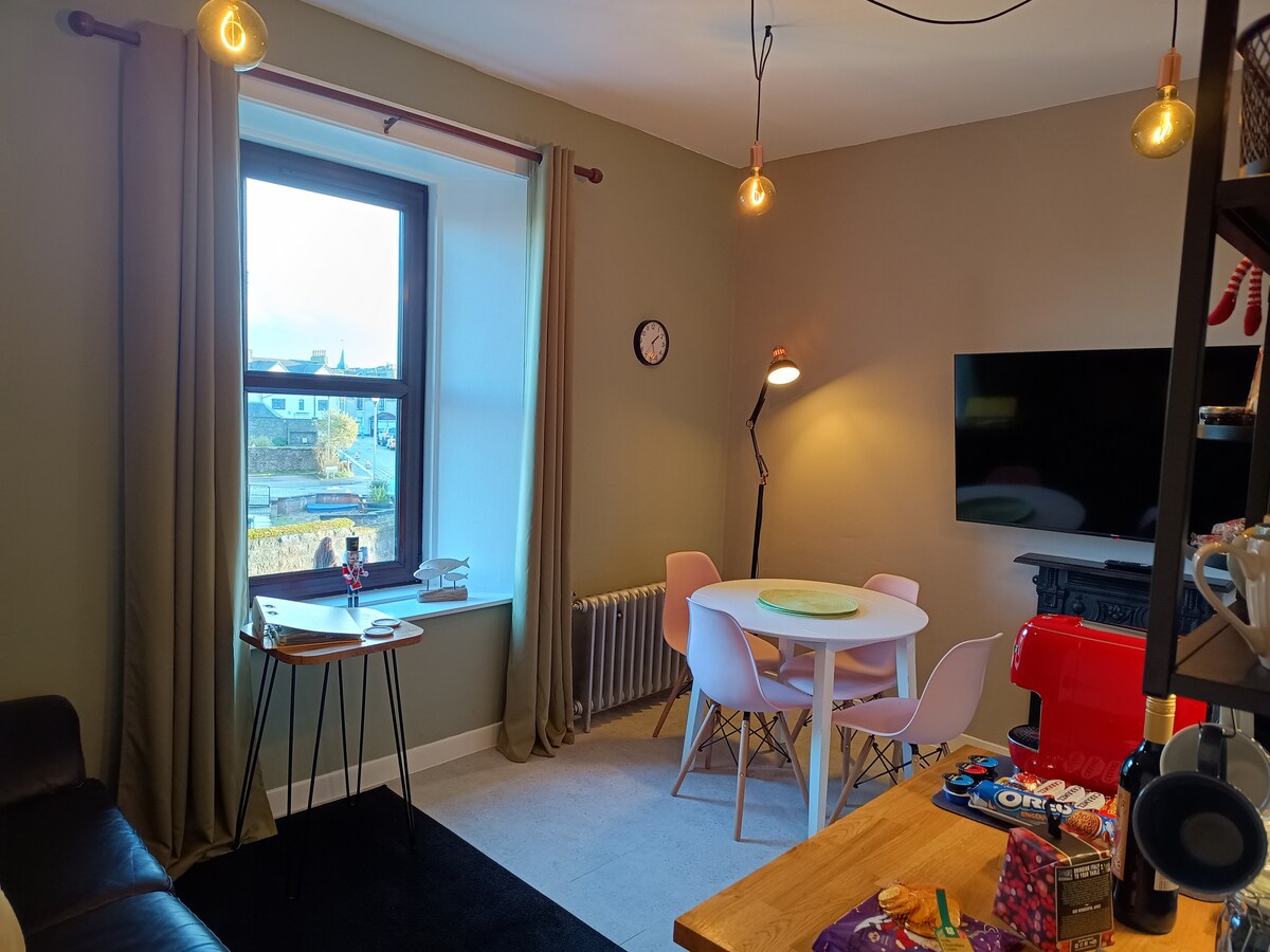 Apartamento independiente recién establecido en la histórica parte de Auld Toon (casco antiguo) de Stonehaven. Muy céntrico para todas las comodidades y a menos de un minuto a pie del pintoresco puerto, bares y restaurantes. La bahía de Stonehaven se puede ver desde las ventanas traseras. El apartamento ha sido completamente renovado recientemente y ofrece un alojamiento muy cómodo. Smart TV y wifi incluidos. También hay aparcamiento en la calle. Perfecta para parejas y familias. Estamos situados en la primera planta.