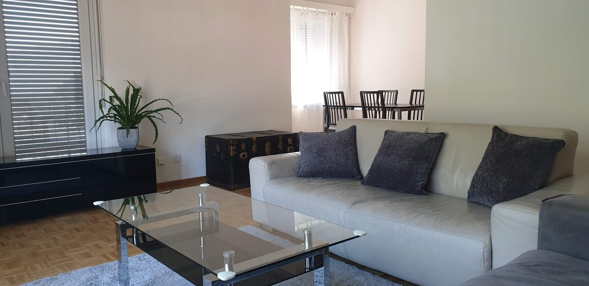Enjoy a stylish and peaceful holiday in a modern and bright flat with all the necessary comforts, consisting of 2 rooms, veranda, open-plan kitchen, modern bathroom, air conditioning, laundry room. Monte Carasso is 2 km from the town centre of Bellinzona. From here you can reach the footpaths to the Ponte Tibetano Carasc and the Monte Carasso-Mornera cable car in just a few minutes. A convenient footbridge connects you to Bellinzona and its castles. Parking spaces in the blue zone at 50m