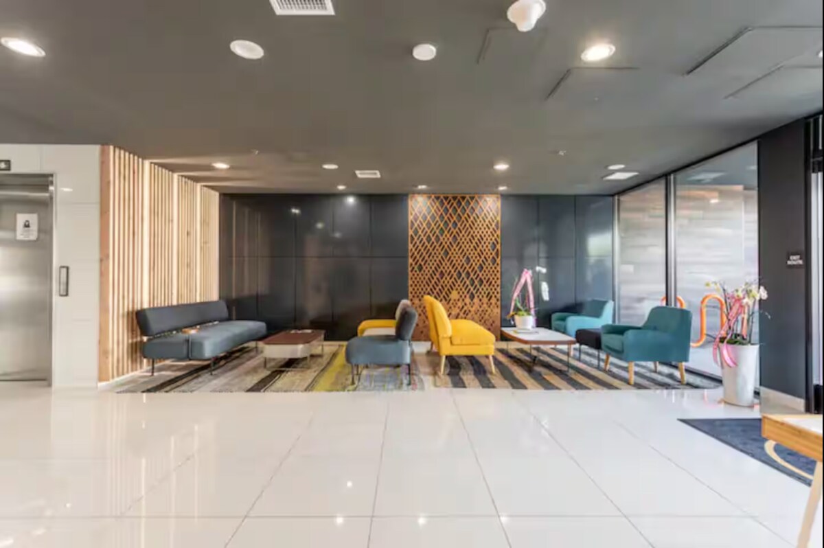 LEE ANTES DE RESERVAR: el alquiler se encuentra en Korea Town y NO en Culver City. - Calles transversales: S Mariposa Ave - W 3rd St. - Cama tamaño king y colchón inflable para huéspedes adicionales. - Wifi de alta velocidad y espacios aptos para trabajar. - Lavadora/secadora en la habitación - Estacionamiento subterráneo asignado. - Camina hasta los restaurantes, la vida nocturna y las atracciones de K-Town. - Cerca de acceso al transporte público y a los principales lugares de Los Ángeles. - Ideal para familias, grupos o viajeros de negocios. - Gimnasio, espacio de trabajo conjunto y servicios en la azotea.