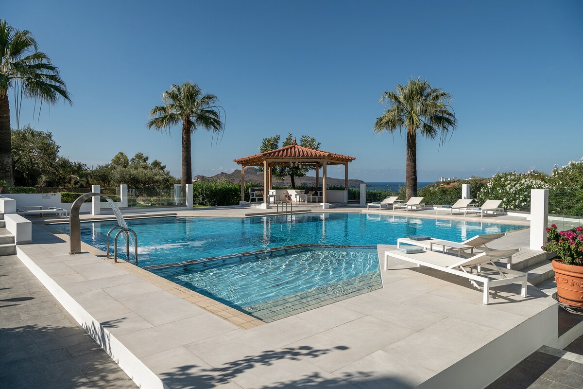 RENOVADO 2023, VISTAS FANTÁSTICAS, DEPARTAMENTOS PRIVADOS LUMINOSOS CON COCINA, BAÑO DE MÁRMOL, BALCÓN GRANDE CON VISTAS AL MAR. AIRE FRESCO, BONITA ZONA DE PISCINA, SE SIENTE COMO EN CASA, CÓMODAS TUMBONAS, SNACK BAR CON COCINA CRETENSE, CERCA DE LA PLAYA, RESTAURANTES, TIENDAS, PASARELA Y PUEBLOS.