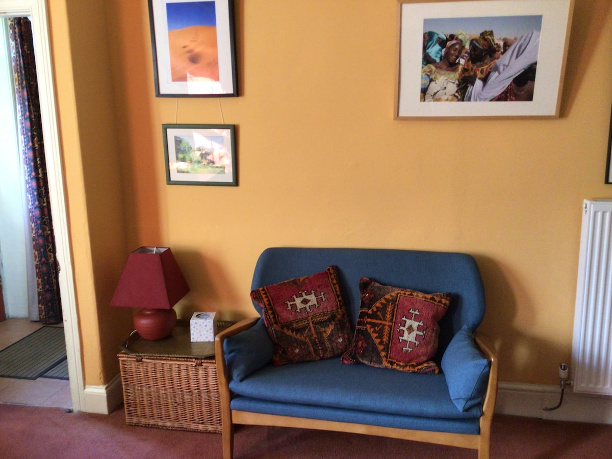 El apartamento de la planta baja, que forma parte de nuestra casa familiar en una terraza victoriana, se encuentra en un pueblo a dos millas de Huddersfield. Ofrece un jardín frente a la sala de estar/dormitorio, cocina independiente y baño con ducha. Por favor, danos un poco de información sobre ti, nos ayuda a saber si somos los anfitriones adecuados para tu estancia, mínimo 2 noches. No podemos ofrecer estancias largas. Podemos alojar a dos personas que estén dispuestas a compartir una cama doble. Nuestro espacio no está preparado para las necesidades de bebés o niños pequeños.