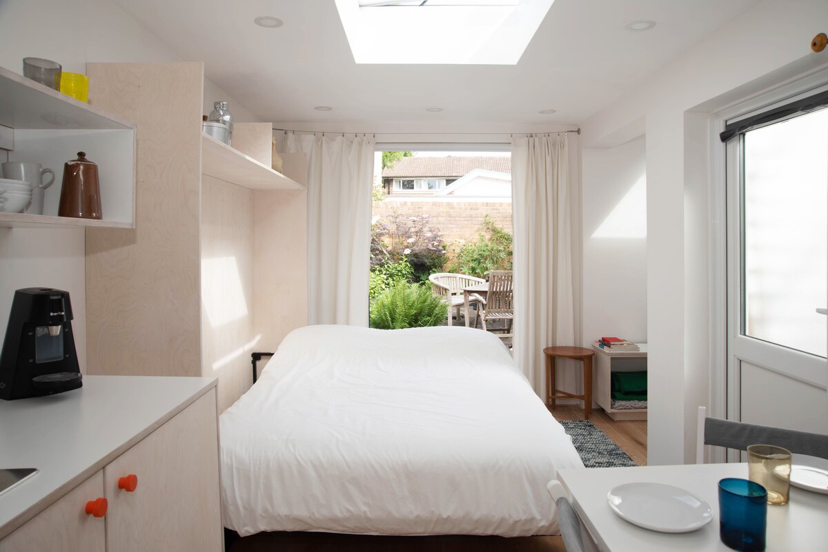 Este es un pequeño espacio perfecto (17 m2) para 1 o 2 personas para visitar y tener como base para el descubrimiento de Londres. Cuenta con todo lo necesario para tu estancia. La cama es una cómoda cama tamaño king con un colchón John Lewis con muelles, se puede plegar para crear más espacio. Despiértate con el canto de los pájaros. Estamos en una carretera privada de un solo sentido, muy tranquila, El estacionamiento está afuera frente a la casa. Tenemos un pequeño gato gris llamado Fern que deambula, esperamos que no seas alérgico a los gatos.