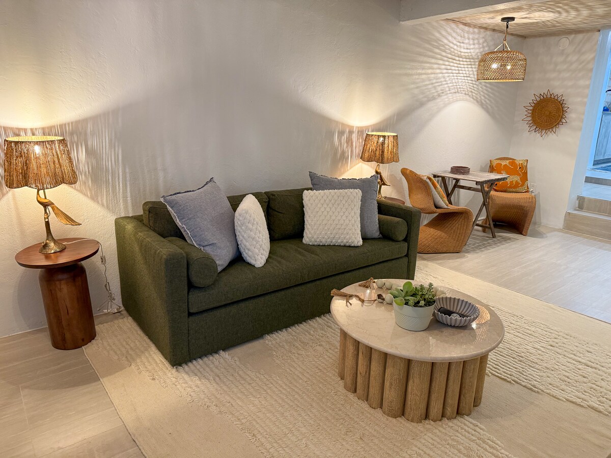 Asequible y a poca distancia a pie de todo lo que necesites en Cruz Bay. No es necesario tener auto. Disfruta de una estancia cómoda y con estilo en este departamento en el primer piso ubicado en el centro de Cruz Bay. A pocos pasos de restaurantes, tiendas de comestibles, comercios, muelles de ferry, taxis y la hermosa playa de Cruz Bay. Disfruta de camas tamaño king y matrimoniales, cómodos colchones de espuma viscoelástica, aire acondicionado en toda la vivienda y cocina con todo lo esencial. Este estudio es perfecto para parejas, familias o grupos pequeños que buscan una estadía cómoda y conveniente sin preocupaciones en St. John.
