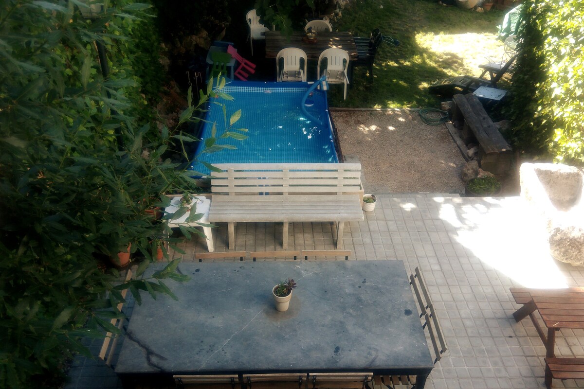 El rincón de Ana (Casa Rural) En este alojamiento se respira tranquilidad: ¡relájate con toda la familia! En un entorno fantástico se encuentra esta casa rural totalmente renovada con piscina, barbacoa, jardín, porche y vistas para relajarse y disfrutar de la naturaleza. Es una casa completa con capacidad para alojar a dos familias a 90 km de Madrid.