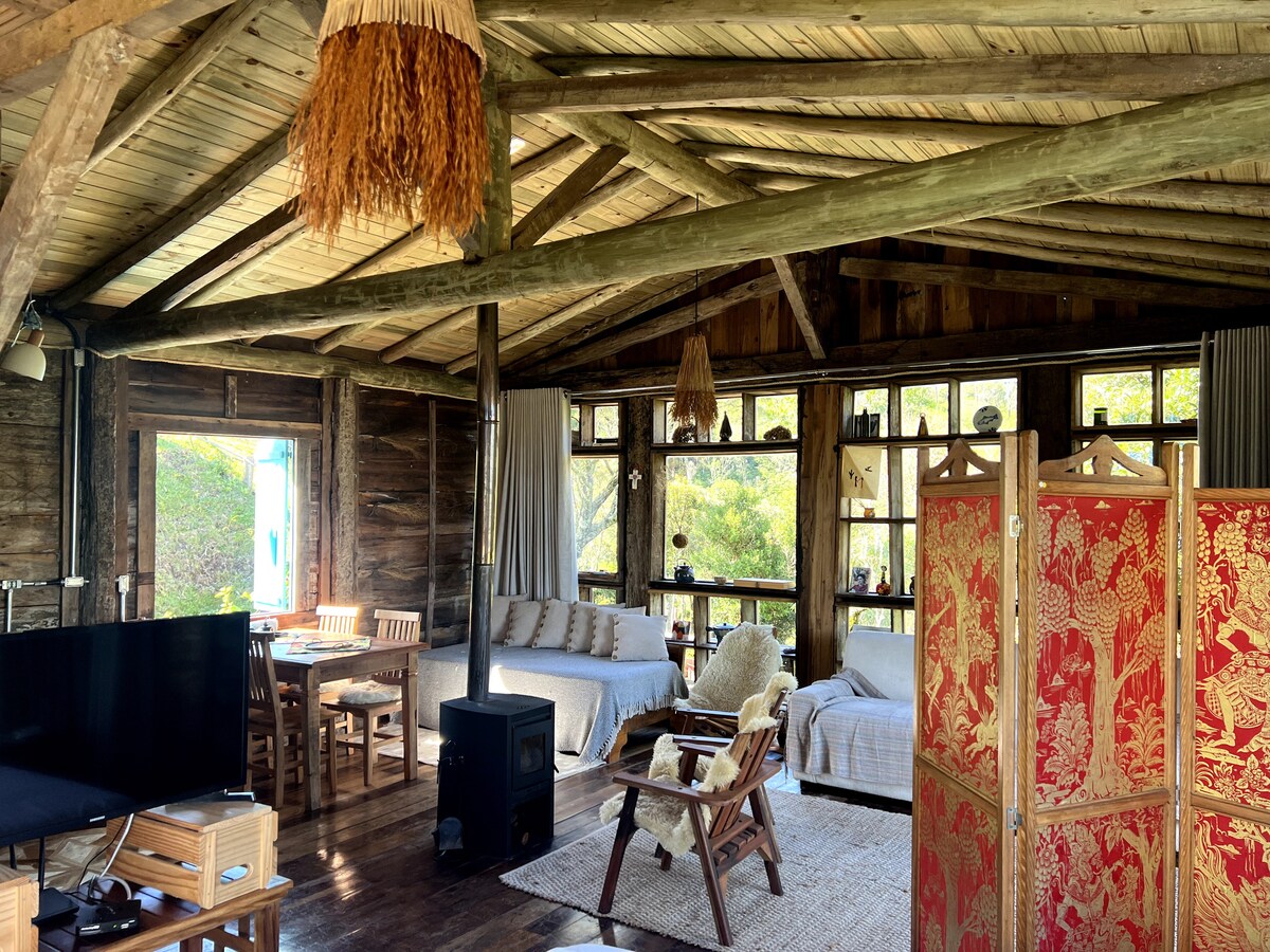 Acrescente esta Experiência em sua visita a Cunha nesta Cabana de MADEIRA rústica. Viva ACONCHEGO e PAZ com muito CONFORTO e CHARME junto à mata. Um refúgio SEGURO, perfeito para casais em busca de paz, romance e descanso aquecidos por Lareira e banho de ofurô . Com tudo que precisa e muita PRIVACIDADE. COZINHA equipada,ÁGUA de Mina, REDES, TV42" c/NETFLIX, WIFI, FOGUEIRA em céu ESTRELADO, canto de passarinhos. Visite Cunha/Paraty -17min do Centro p Asfalto
