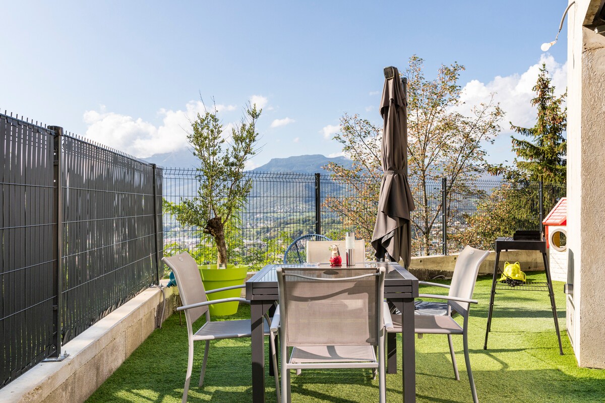 Acogedor en Chignin con terraza y balcón Descripción: Apartamento de 39 m² en Chignin, en el corazón de los viñedos de Saboya. Terraza y balcón con vistas a la montaña. ¡Ideal para una estancia en la naturaleza! El espacio: Sala de estar con sofá cama, TV, Wi-Fi. Cocina equipada (horno, nevera...) Habitación (cama de 140 cm). Baño, toallas incluidas. Estacionamiento gratuito Puntos fuertes: Cerca de los viñedos Esquí y lago de Bourget Rutas Bauges. 15 minutos de Chambéry. Información: 2-4 personas. Check-in autónomo. Limpieza incluida.