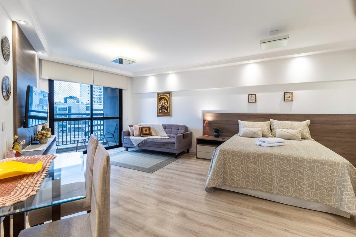 Studio aconchegante, sofisticado e amplo no Batel