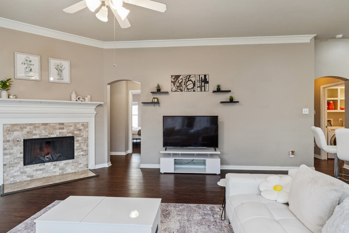 ¡Te damos la bienvenida a tu lujoso refugio de 4 dormitorios! Disfruta de una piscina climatizada, un cine en casa privado y una amplia sala de estar perfecta para familias o grupos. 4 dormitorios lujosos y 3,5 baños Cocina del chef totalmente equipada Wifi rápido y espacio para trabajar Asientos y parrilla en el patio trasero A minutos de restaurantes, tiendas y autopistas principales, pero escondido en un vecindario tranquilo para noches de descanso. ¡Reserva ahora para asegurarte las fechas y empezar a planificar una estancia inolvidable!