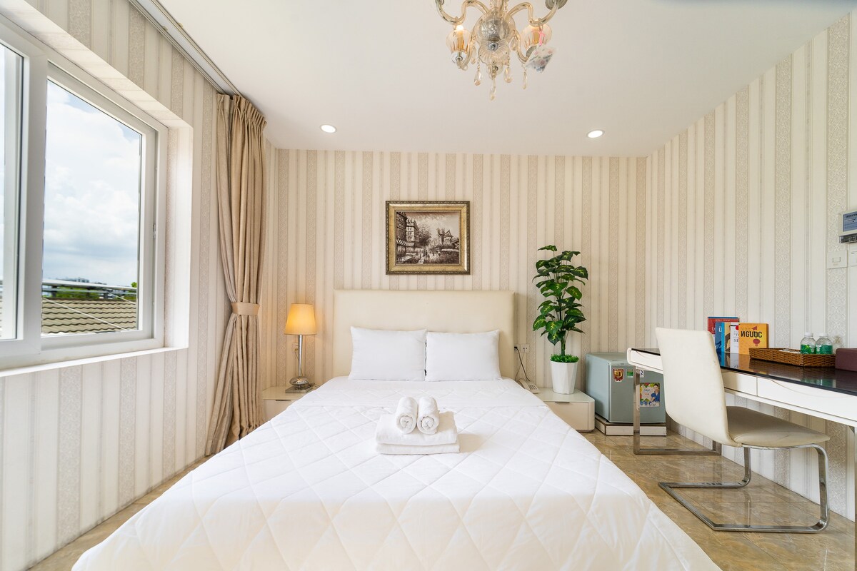 Nuestro alojamiento se encuentra en un callejón en el centro de la ciudad. Es una excelente ubicación cerca de muchas cafeterías, tiendas de alimentos, restaurante, mercado, gimnasio, etc. - Agrega: Nguyen Dinh Chieu st, Distrito 3 (a 5 minutos del Distrito 1). - Cama doble y colchón suave - Ascensor, aire acondicionado, TV y cable, WiFi, escritorio, silla, armario, caja fuerte - Cocina: nevera, cocina de inducción, hervidor, Dish, Tazón, Dish, olla... - Baño privado: ducha caliente y lleno de elementos esenciales - Limpieza y aparcamiento GRATUITOS. - La recepcionista ayudará a los huéspedes a hacer el check-in.