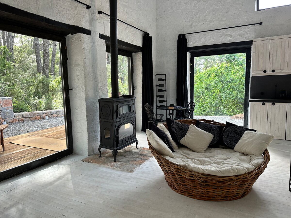 Este refugio elegante y tranquilo enclavado en un bosque de ensueño en Gökçeovacık es perfecto para reducir la velocidad y relajarse. En esta ubicación única, puedes disfrutar de actividades como paseos por la naturaleza, yoga y meditación. La propiedad cuenta con un jacuzzi de piedra natural en su jardín privado y también proporciona acceso a la piscina serena y natural de la granja en la que está situada. A solo 15-18 minutos en auto del centro de Göcek, este lugar ofrece una experiencia de naturaleza minimalista, tranquila y aislada.