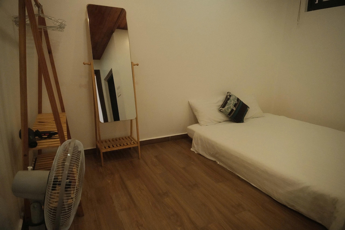 < English below > Dos habitaciones en el tercer piso (piso más alto), balcón grande, vista a la ciudad Comedor (nevera, utensilios de cocina) e inodoro separado Lavadoras privadas Adecuado para familias de 2 a 4 huéspedes Ubicación céntrica, muchas tiendas alrededor. Dos habitaciones dobles en el piso más alto, balcón privado con vista a la ciudad Cocina privada con nevera, estufa, utensilios de cocina Lavadora privada Adecuado para familias de 2 a 4 personas A pocos pasos, encontrarás restaurantes locales.