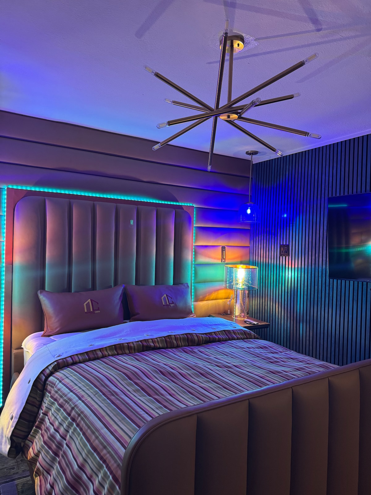 Te damos la bienvenida a Skyline Seduction City View Loft, donde el lujo se une al deseo. Esta sensual escapada al centro de la ciudad te envuelve en vistas del suelo al techo, noches de terciopelo negro y toques dorados de elegancia. Deja que las luces de la ciudad creen el ambiente mientras bebes vino junto a la ventana o te hundes en la lujosa cama cubierta de lujosas texturas. Los elegantes suelos de mármol, el ambiente cambiante y el entorno íntimo crean el lugar perfecto para el romance. Disfruta de una estancia tan atrevida, sexy e inolvidable como tú.