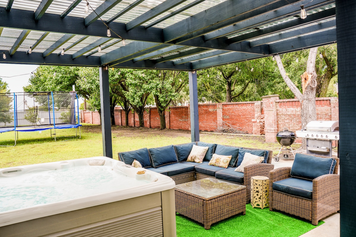 Escapada dorada – Anfitrión: All Season Escapes Te damos la bienvenida al Dallas Modern Retreat, donde el diseño elegante se une a la comodidad acogedora. ✨ Aspectos destacados: 🏡 Espacios de estar elegantes y dormitorios tranquilos 🎮 Sala de juegos con juegos de patio de tamaño real 🔥 Fogata con asientos Adirondack 💦 Piscina de tanque de stock de temporada y bañera de hidromasaje 👢 Mural vibrante de estilo texano 📽 Configuración de película al aire libre bajo las estrellas 🍽 Cocina totalmente equipada para el entretenimiento 🌆 A pocos minutos del centro de Dallas Tu mejor escapada a Dallas: ¡reserva tu estadía hoy mismo!