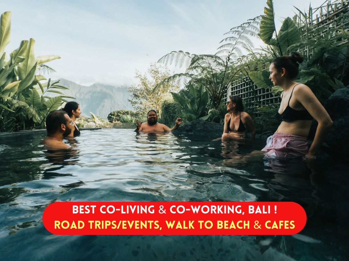 ➤ Sokkool Coliving & Coworking — Central Canggu’s top-rated digital nomad hub, 6mins walk (600m) to Berawa Beach! ★ Unwind in our coworking area, cool off in our inviting pool, take in the stunning views from our panoramic rooftop terrace, & enjoy the beach just a short scooter ride away • Enjoy a private AC room with fast Wi-Fi, desk, ensuite, & access to our Rooftop Kitchen, Pool & 24/7 coworking! • Meet like-minded remote workers at our weekly events. • Close to cafes, gyms & nightlife