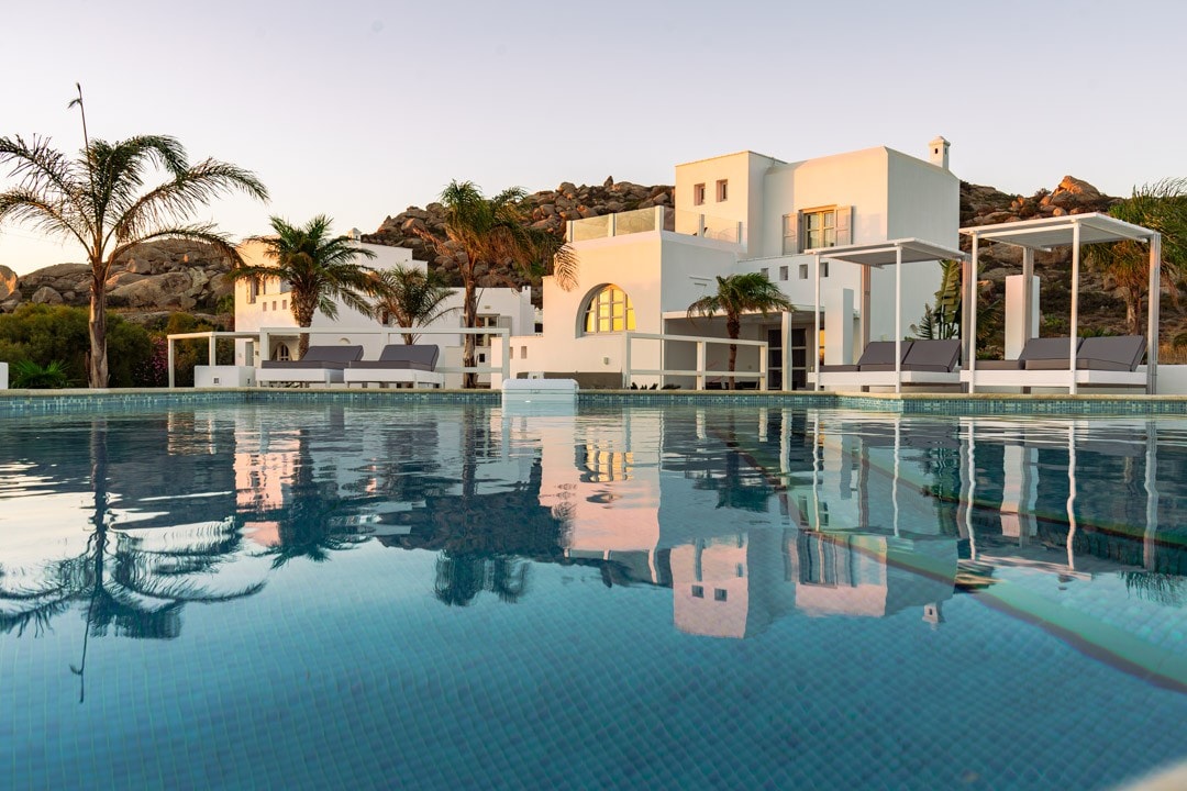 Villa Arismari is located on a serene hillside, surrounded by natural boulders, overlooking the beautiful coast of Orkos. We have a breathtaking panoramic view of the Aegean Sea and our neighboring island of Paros. We are situated between the main beach and smaller bays of Orkos. While enjoying the view that Villa Arismari offers prepare to take your most incredible selfies . Villa Arismari is a beautifully designed villa of Cycladic minimal architecture.