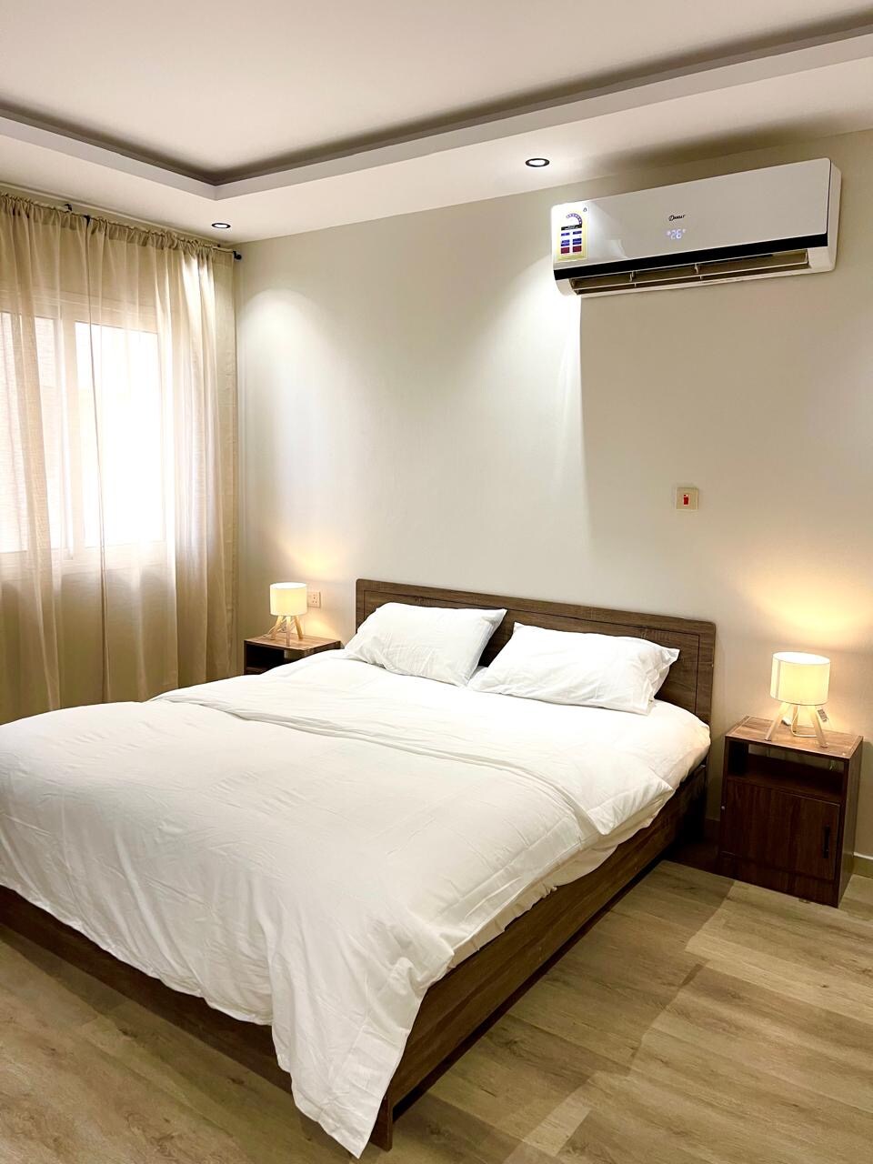 Este alojamiento está diseñado para satisfacer sus necesidades y crear su bienestar y comodidad con todos los detalles. Se caracteriza por la privacidad y la seguridad con una entrada inteligente y las necesidades del dormitorio para pasar una buena noche, una cama Master, una pantalla inteligente de 60 pulgadas y una red Wi-Fi. Se caracteriza por su ubicación distintiva y su proximidad a la vía del tren y un centro comercial a unos 4 kilos. Está diseñado con colores cómodos y muebles modernos para hacer su comodidad... Le deseo una buena noche...