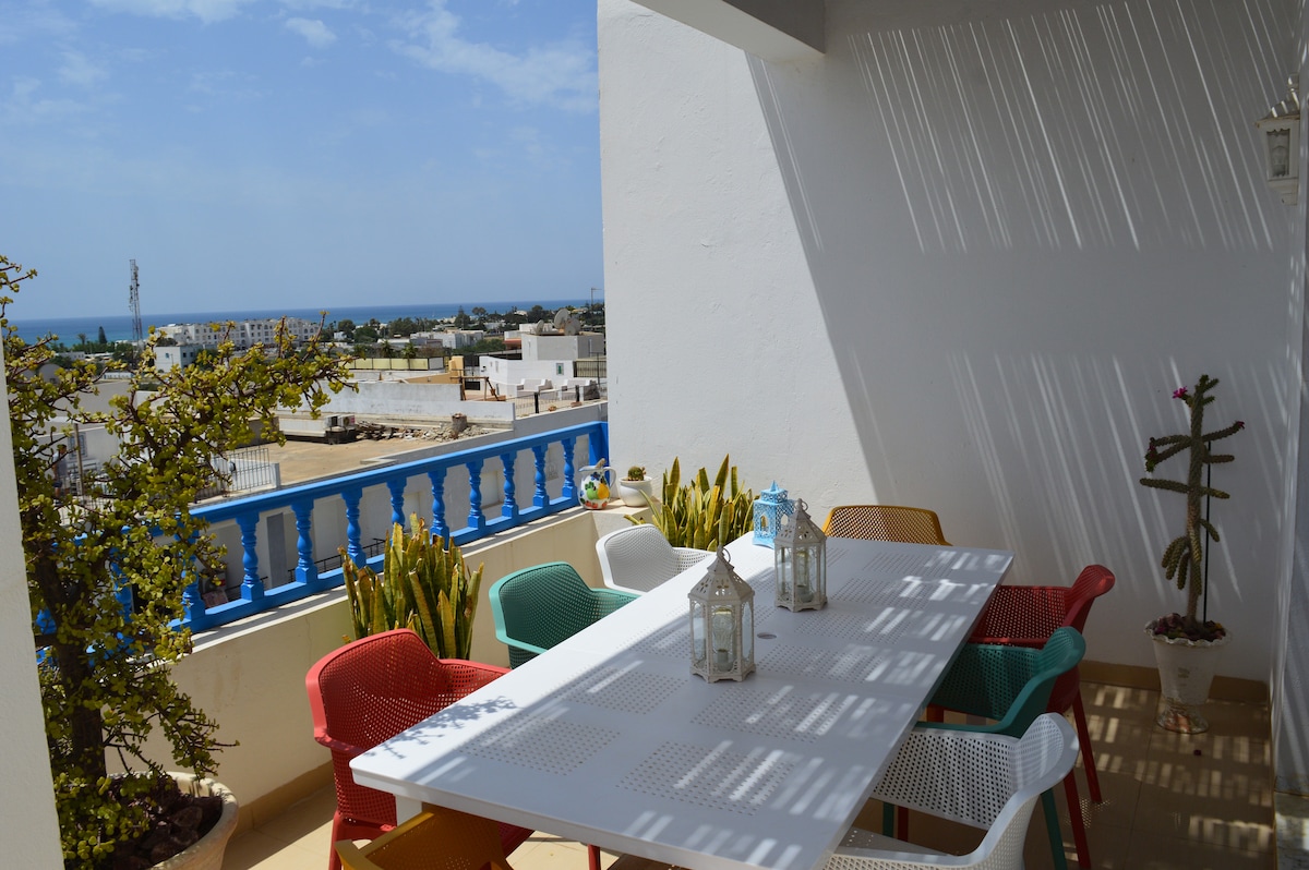 Tranquilo y luminoso, nuestro apartamento está en la esquina de una residencia con el encanto típico de Sidi Bousaid con una hermosa orientación ideal para ponerse en la terraza y admirar un hermoso panorama del Mar Mediterráneo. A 10 minutos de Nabeul y a 3 minutos de Hammamet Nord, el apartamento se encuentra en una zona residencial y cerca de la zona turística (hoteles, restaurantes, bares) y de todos los servicios (tienda de comestibles, panadería, restaurante) pero sobre todo a 500 m de la magnífica playa de Les Deux Oueds.