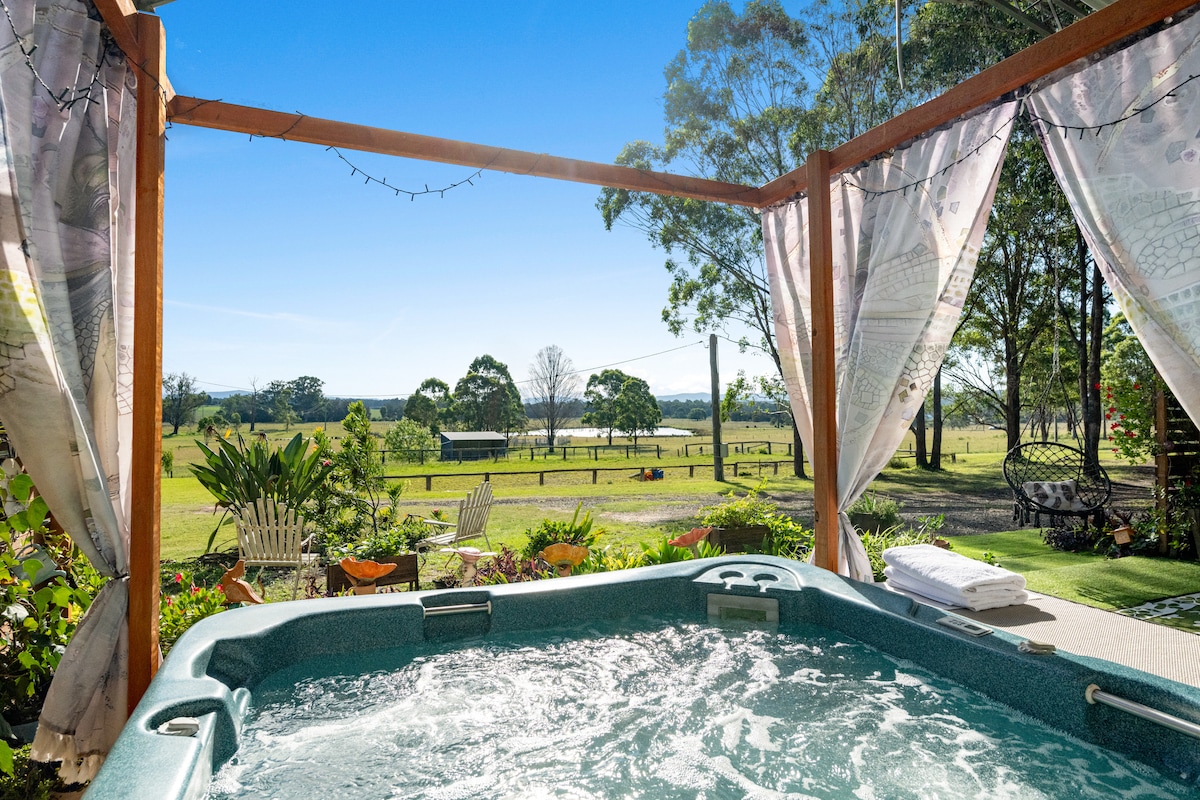 Hemos creado un fabuloso estudio privado en nuestra granja de 150 acres para 2 personas que desean esa escapada privada y aislada, los bebés se alojan gratis, trae lo que necesites para el bebé. también se daría la bienvenida a un pequeño doggo entrenado en la casa. No puedes dejar al perro solo en ningún momento si sales, debes acompañarte. Es un espacio mágico con un jacuzzi justo afuera de la puerta para tu uso personal viendo la puesta de sol con una botella de burbujas que te suministramos es posible que veas un canguro o dos o incluso un wombat. No tenemos wifi.